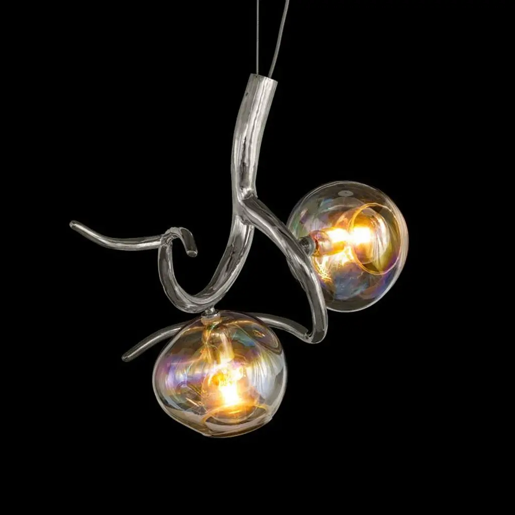 The Ersa, a modern flush mount in a nickel finish and mouth-blown glass spheres, is designed by William Brand, founder of Brand van Egmond. The Brand van Egmond modern ceiling lights are an important element in each interior project, through the wide application of endless possibilities, while maintaining its sculptural value. Ersa, named after the ancient Greek goddess of morning dew, draws inspiration from that most magical moment of the day: the sunrise. Early morning, when the first light of day sends the darkness of the night away, we can see one of nature’s wonders on display: dew drops formed throughout the night. Just as the change of temperature on a surface creates dew, also new finishes and materials are born under shifting conditions. The iridescence on our glass, leading to the gradual change of color as the angle of view or illumination changes, radiates a stunning glow.The Ersa collection is available in chandeliers, pendants, flush mounts, floor lamps, and wall lights and sconces.The Ersa collection offers several finishes for you to discover: black matt, white matt, bronze, nickel, brass, and brass burnished. Standard the Ersa will be delivered with iridescent glass spheres. Other options are bronze translucent and clear glass spheres.Upon receiving your confirmation, our atelier will start with the creation by hand of your ordered lighting sculpture. After your confirmation, we can no longer change the specifications of your order.