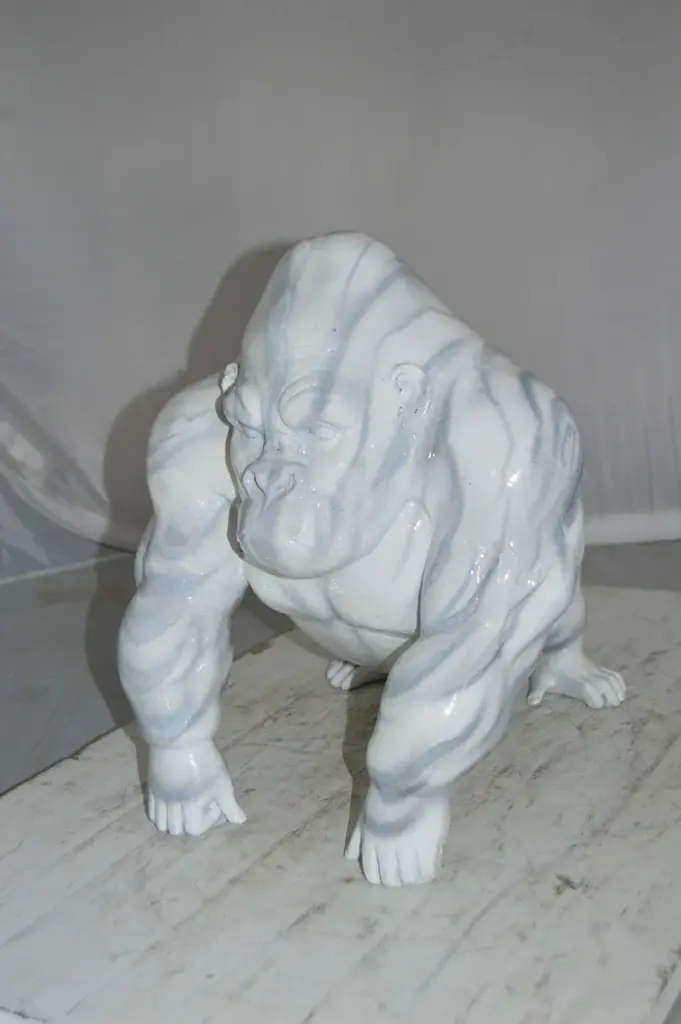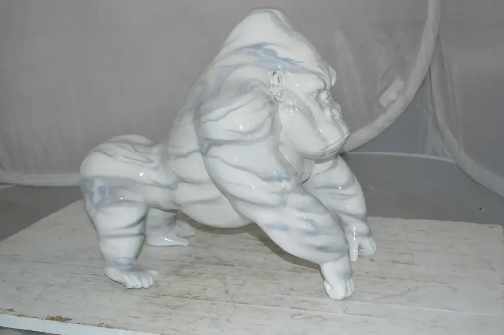 Modern King Kong Grey White Bronze Statue - Size: 15"l X 13"w X 17"h.