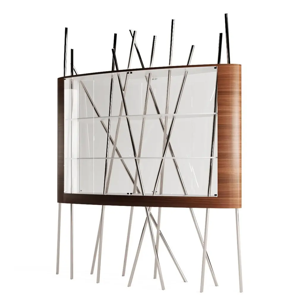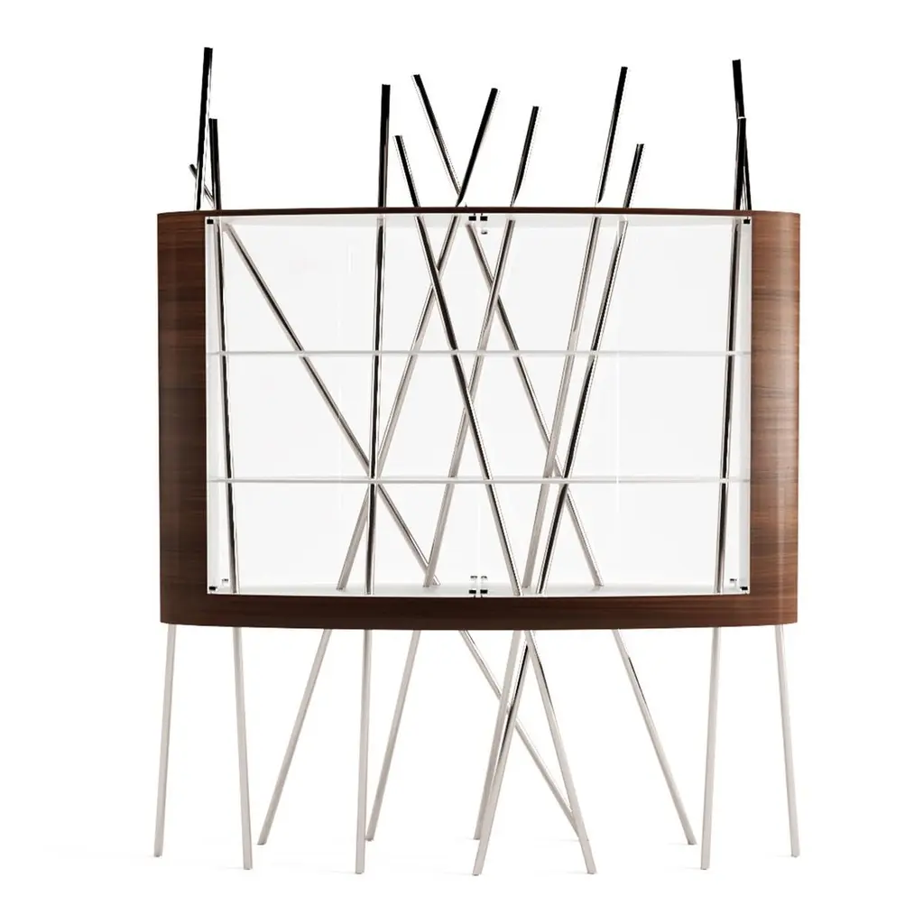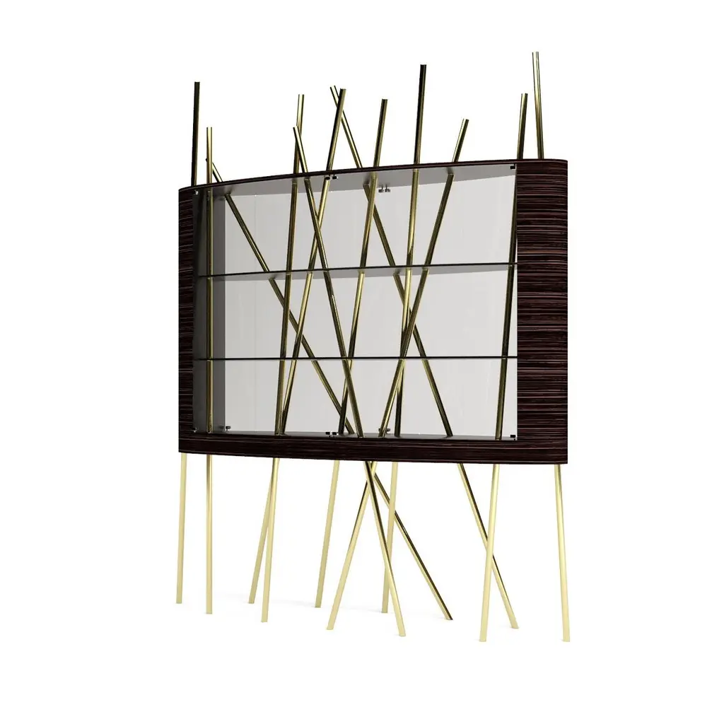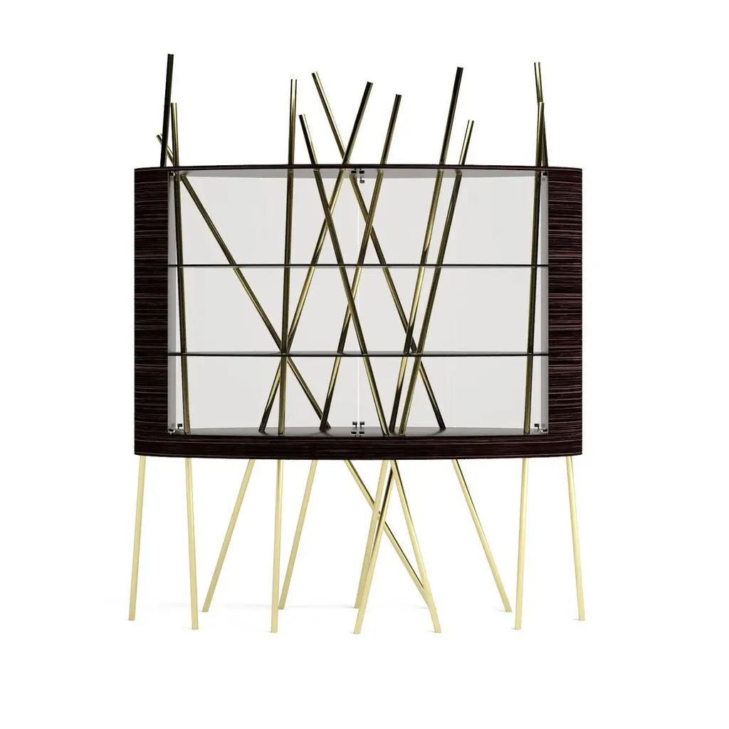 The Mikado Collection is inspired by the game "Pick a Stick" we used to play in childhood. Tubes of thick copper, which remind us of the Mikado sticks game, are cut at precise angles and fitted with great accuracy in the furniture, providing much-needed support. This vitrine, "Mikado Display Case XL", is a beautiful way to showcase those collectables we love — unique pieces that shouldn't be in a drawer, sometimes filled with sentimental value. Its form is light and fluid, with the vitrine appearing to float over the finely crafted legs. Many consider this piece a work of art, like a sculpture. The listed piece is mastercrafted of carefully selected black oak wood, black lacquered wood, and handmade brushed copper. Copper furniture is not just a trend; it will last long. It's perfect for creating a warm and inviting ambience in any space. Also, copper is 100% recyclable, eco-friendly, and highly durable.However, we can also manufacture this vitrine using customised options and larger sizes. Structure: Stainless steel (polished or brushed); brass (polished or brushed); or copper (polished or brushed). The polished or brushed finish is handmade by the author.Body: Another kind of wood (ebony macassar, tineo, walnut, ironwood) or lacquer colour.Smaller size (50 x 150 x 205 cm - 59,1 x 19,7 x 80,7 in).Custom dimensions are only available after analysis.Needs simple assembly.You can try this piece in your space using Augmented Reality on your mobile phone (available on our Mikado Collection website).In 2018, it won a "Silver A' Design Award" in the "Furniture, Decorative Items, and Homeware Design" category.This piece is entirely made in Portugal and manufactured artisanally. The author carefully executed or supervised every process step in a small workshop context.Labour of love from Portugal.Designer/Author - Joao Faria/Emotional Objects.Manufacturer - Joao Faria/Emotional Objects.At Emotional Objects, we don't follow trends or fashion. Instead, we create distinct and timeless objects with solid ideas and concepts. Every Emotional Object has a meaningful story behind it. Made to last for generations, we proudly see our objects as future furniture classics that will stand the test of time.Working in Portugal with the best artisans, Joao Faria's work is difficult to distinguish between functional and fine art. He uses the finest materials and techniques, but most importantly, he only makes pieces he would want for himself.Art Furniture, Unique, Tailored, Emotional, Truly Yours.