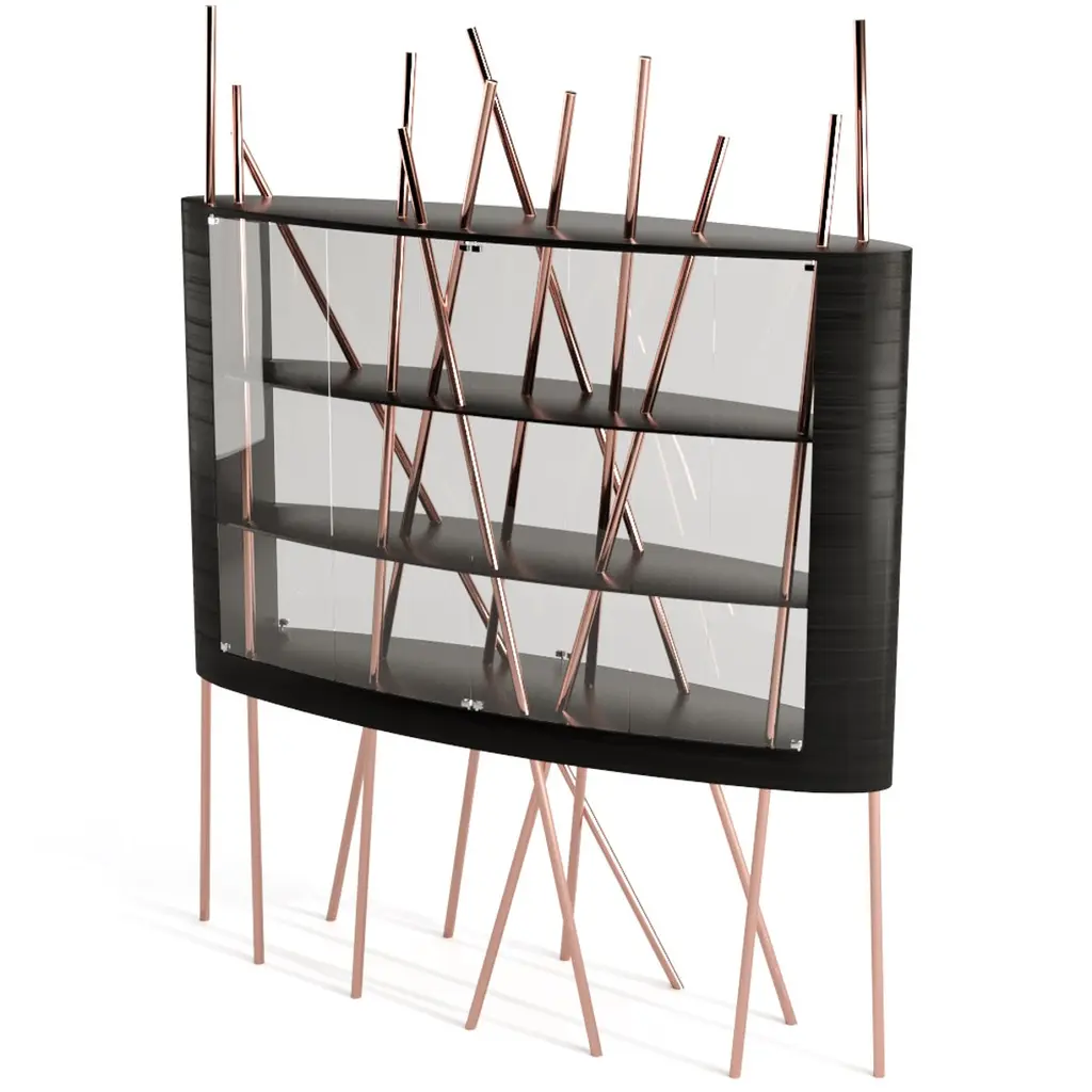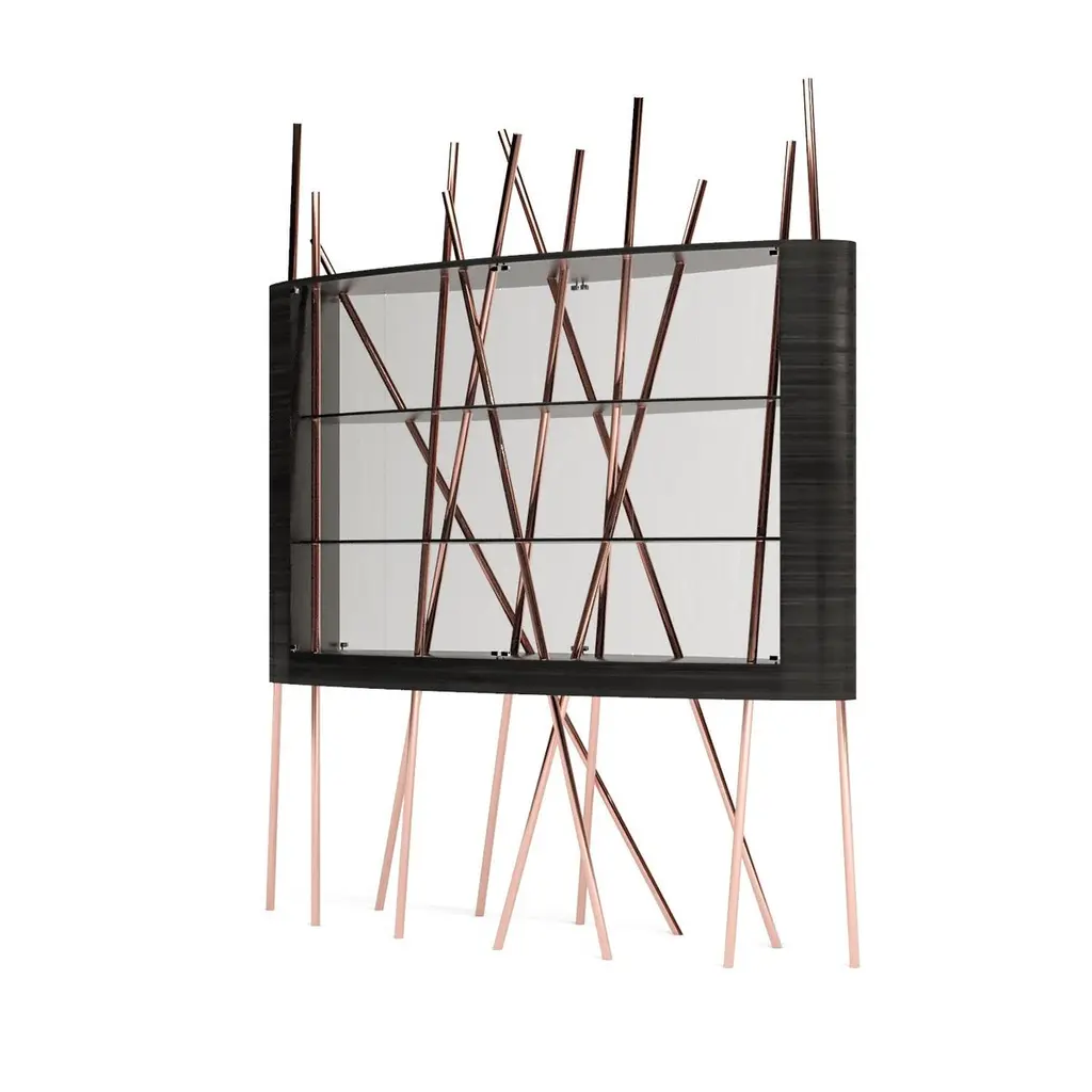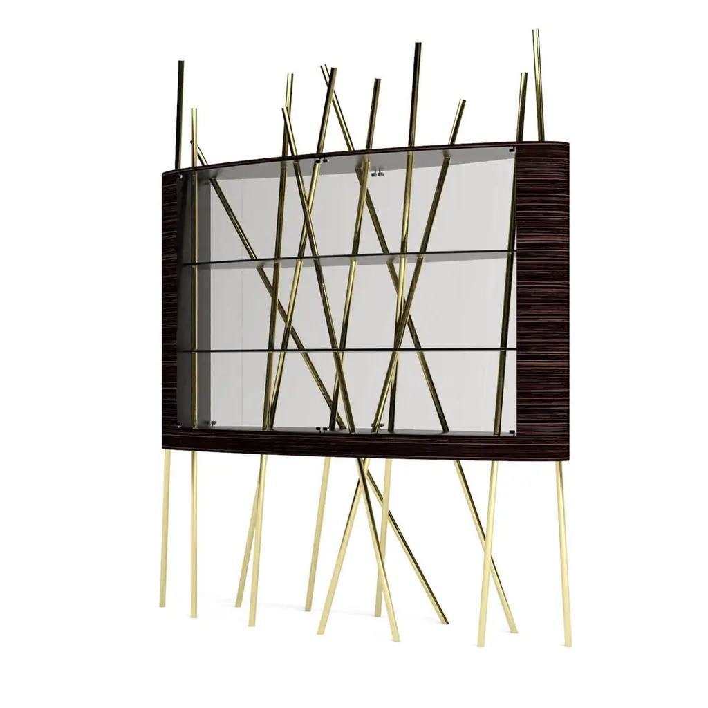 The Mikado Collection is inspired by the game "Pick a Stick" we used to play in childhood. Tubes of thick brass, which remind us of the Mikado sticks game, are cut at precise angles and fitted with great accuracy in the furniture, providing much-needed support. This vitrine, "Mikado Display Case", is a beautiful way to showcase those collectables we love—unique pieces that shouldn't be in a drawer, sometimes filled with sentimental value. Its form is light and fluid, with the vitrine appearing to float over the finely crafted legs. Many consider this piece a work of art, like a sculpture. The listed piece is mastercrafted of carefully selected ebony macassar wood, black lacquered wood, and handmade brushed brass. However, we can also manufacture this vitrine in customised options and larger sizes. Structure: Stainless steel (polished or brushed); brass (polished or brushed); or copper (polished or brushed). The polished or brushed finish is handmade by the author.Body: Another kind of wood (black oak, tineo, walnut, ironwood) or lacquer colour.Smaller size (50 x 150 x 205 cm - 59,1 x 19,7 x 80,7 in).Custom dimensions are only available after analysis.Needs simple assembly.You can try this piece in your space using Augmented Reality on your mobile phone (available on our Mikado Collection website).In 2018, it won a "Silver A' Design Award" in the "Furniture, Decorative Items, and Homeware Design" category.This piece is entirely made in Portugal and manufactured artisanally. The author carefully executed or supervised every process step in a small workshop context.Labour of love from Portugal.Designer/Author - Joao Faria/Emotional Objects.Manufacturer - Joao Faria/Emotional Objects.At Emotional Objects, we don't follow trends or fashion. Instead, we create distinct and timeless objects with solid ideas and concepts. Every Emotional Object has a meaningful story behind it. Made to last for generations, we proudly see our objects as future furniture classics that will stand the test of time.Working in Portugal with the best artisans, the distinction between functional and fine art is difficult to find in Joao Faria's work. He uses the finest materials and techniques, but, most importantly, he only makes pieces he would want for himself.Art Furniture, Unique, Tailored, Emotional, Truly Yours.