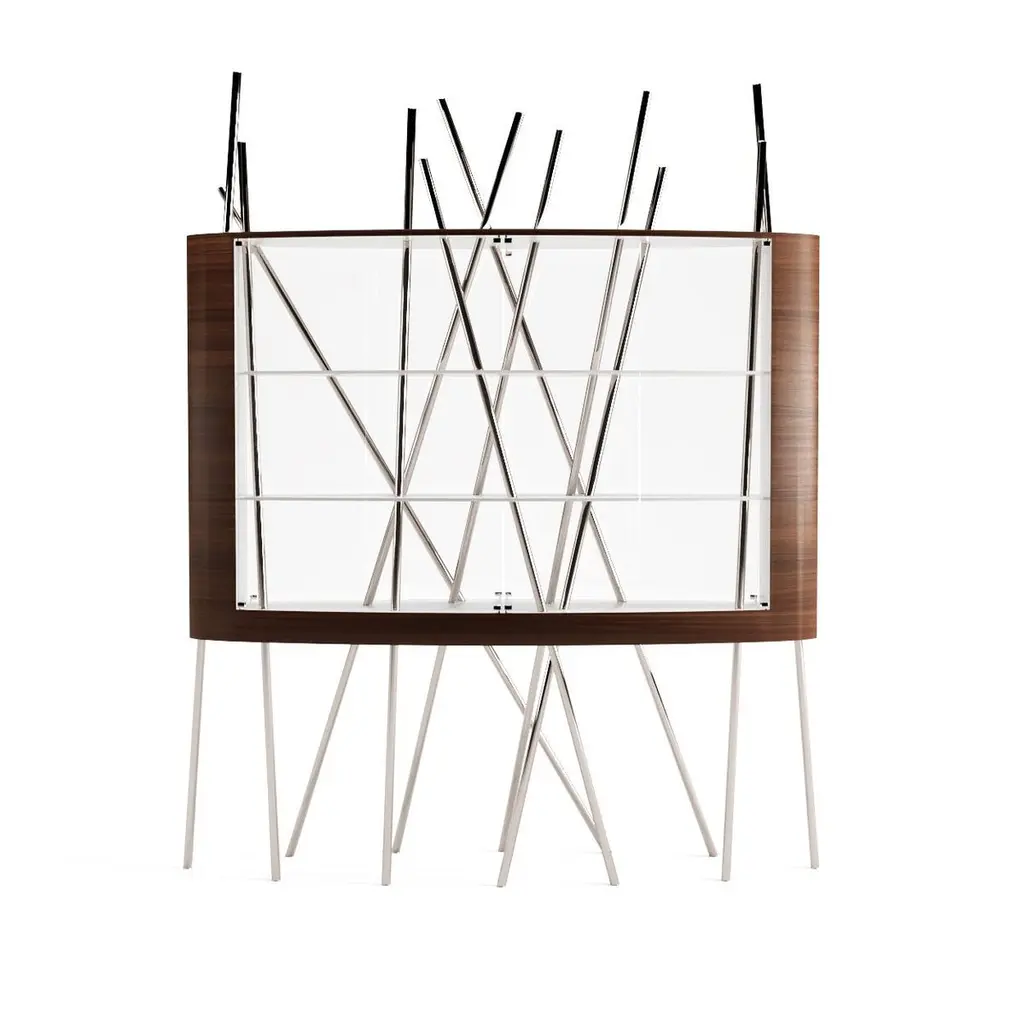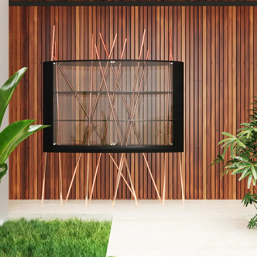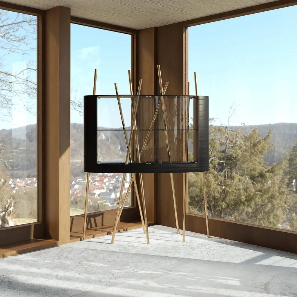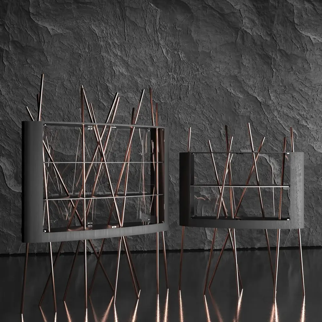 The Mikado Collection is inspired by the game "Pick a Stick" we used to play in childhood. Tubes of thick brass, which remind us of the Mikado sticks game, are cut at precise angles and fitted with great accuracy in the furniture, providing much-needed support. This vitrine, "Mikado Display Case", is a beautiful way to showcase those collectables we love—unique pieces that shouldn't be in a drawer, sometimes filled with sentimental value. Its form is light and fluid, with the vitrine appearing to float over the finely crafted legs. Many consider this piece a work of art, like a sculpture. The listed piece is mastercrafted of carefully selected ebony macassar wood, black lacquered wood, and handmade brushed brass. However, we can also manufacture this vitrine in customised options and larger sizes. Structure: Stainless steel (polished or brushed); brass (polished or brushed); or copper (polished or brushed). The polished or brushed finish is handmade by the author.Body: Another kind of wood (black oak, tineo, walnut, ironwood) or lacquer colour.Smaller size (50 x 150 x 205 cm - 59,1 x 19,7 x 80,7 in).Custom dimensions are only available after analysis.Needs simple assembly.You can try this piece in your space using Augmented Reality on your mobile phone (available on our Mikado Collection website).In 2018, it won a "Silver A' Design Award" in the "Furniture, Decorative Items, and Homeware Design" category.This piece is entirely made in Portugal and manufactured artisanally. The author carefully executed or supervised every process step in a small workshop context.Labour of love from Portugal.Designer/Author - Joao Faria/Emotional Objects.Manufacturer - Joao Faria/Emotional Objects.At Emotional Objects, we don't follow trends or fashion. Instead, we create distinct and timeless objects with solid ideas and concepts. Every Emotional Object has a meaningful story behind it. Made to last for generations, we proudly see our objects as future furniture classics that will stand the test of time.Working in Portugal with the best artisans, the distinction between functional and fine art is difficult to find in Joao Faria's work. He uses the finest materials and techniques, but, most importantly, he only makes pieces he would want for himself.Art Furniture, Unique, Tailored, Emotional, Truly Yours.