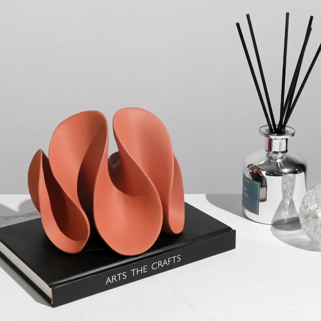 Modern Orange Resin Abstract Flower Ornament Sculpture Decor Art Home Desk Statue Object