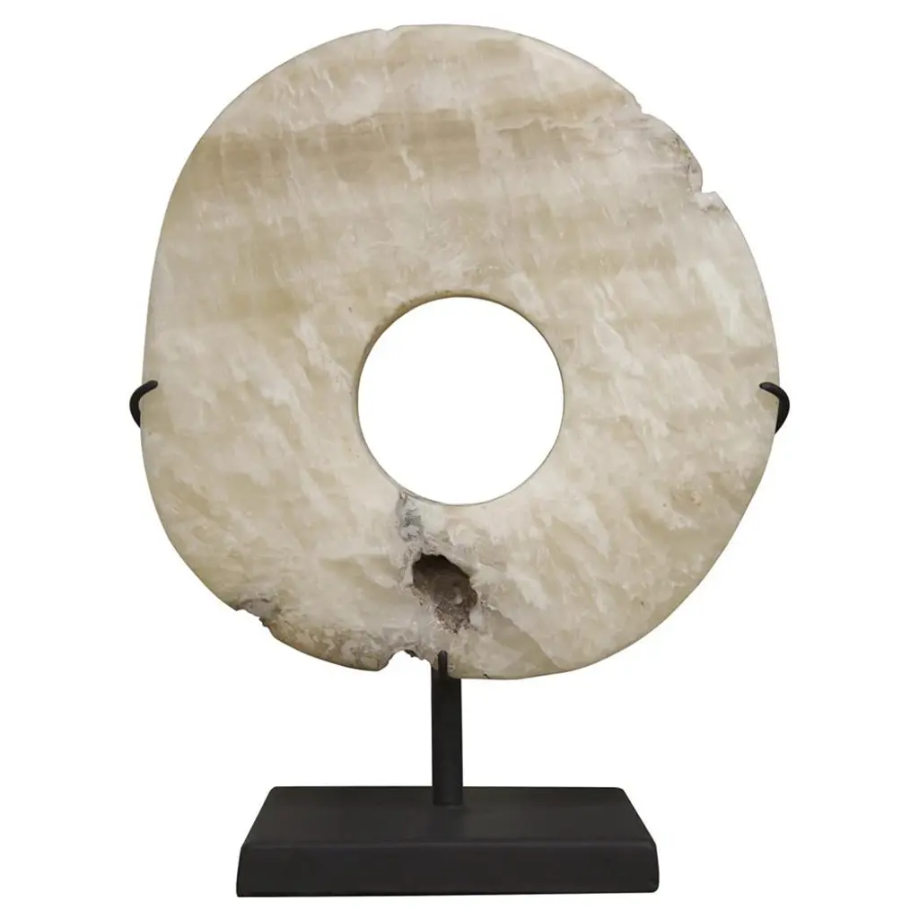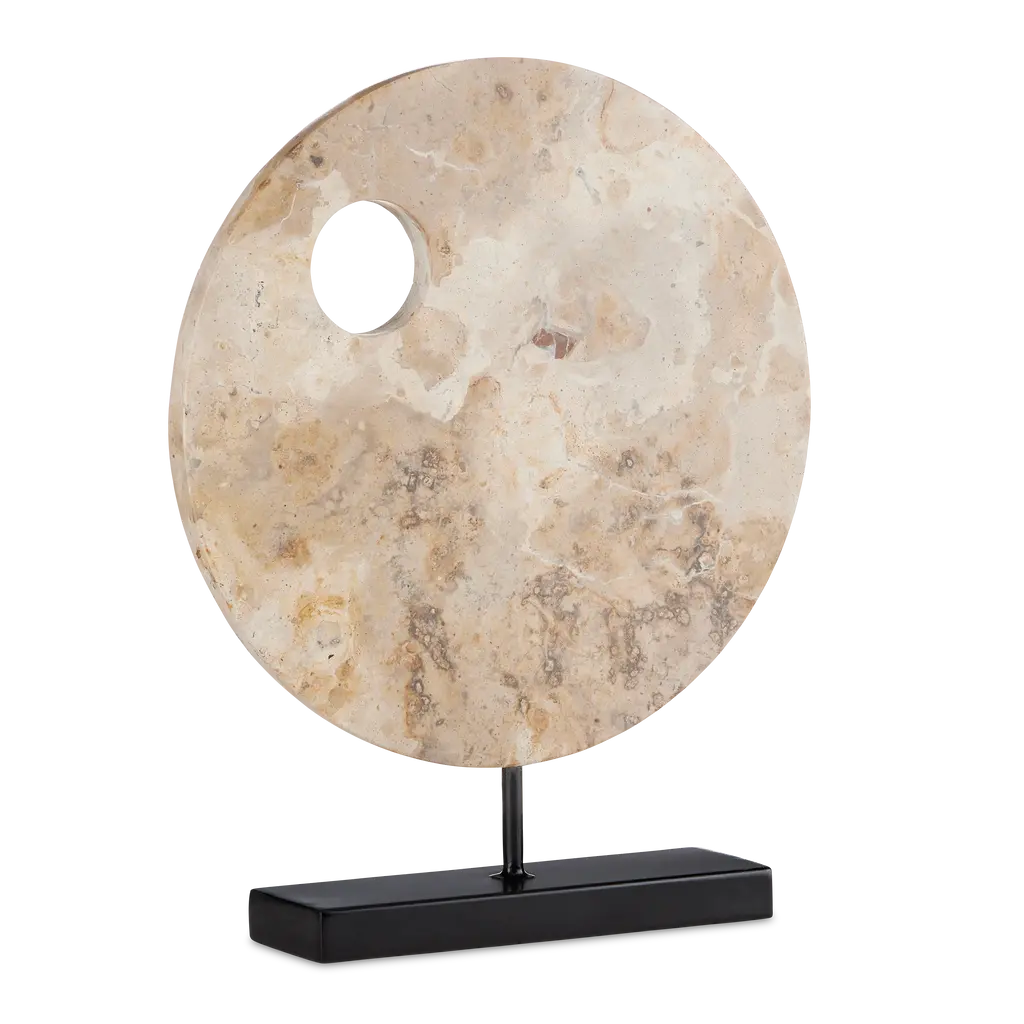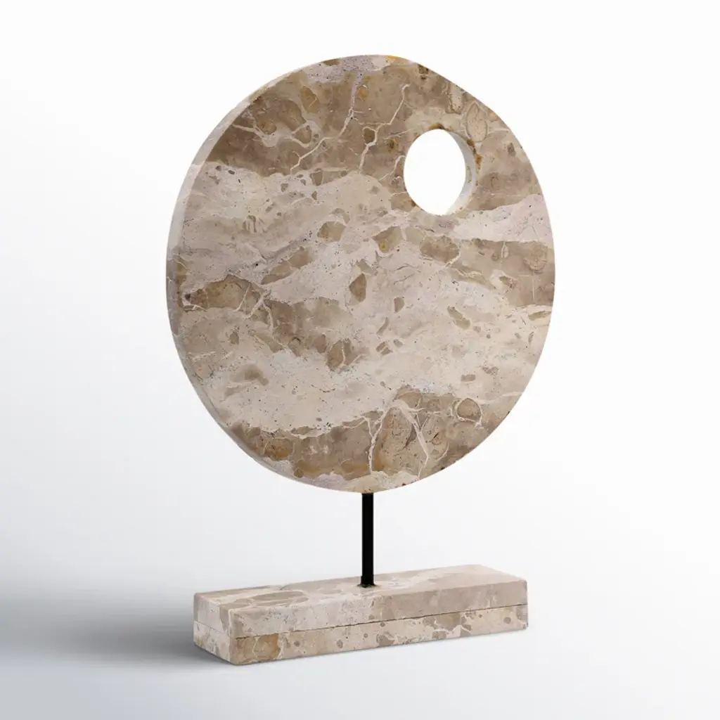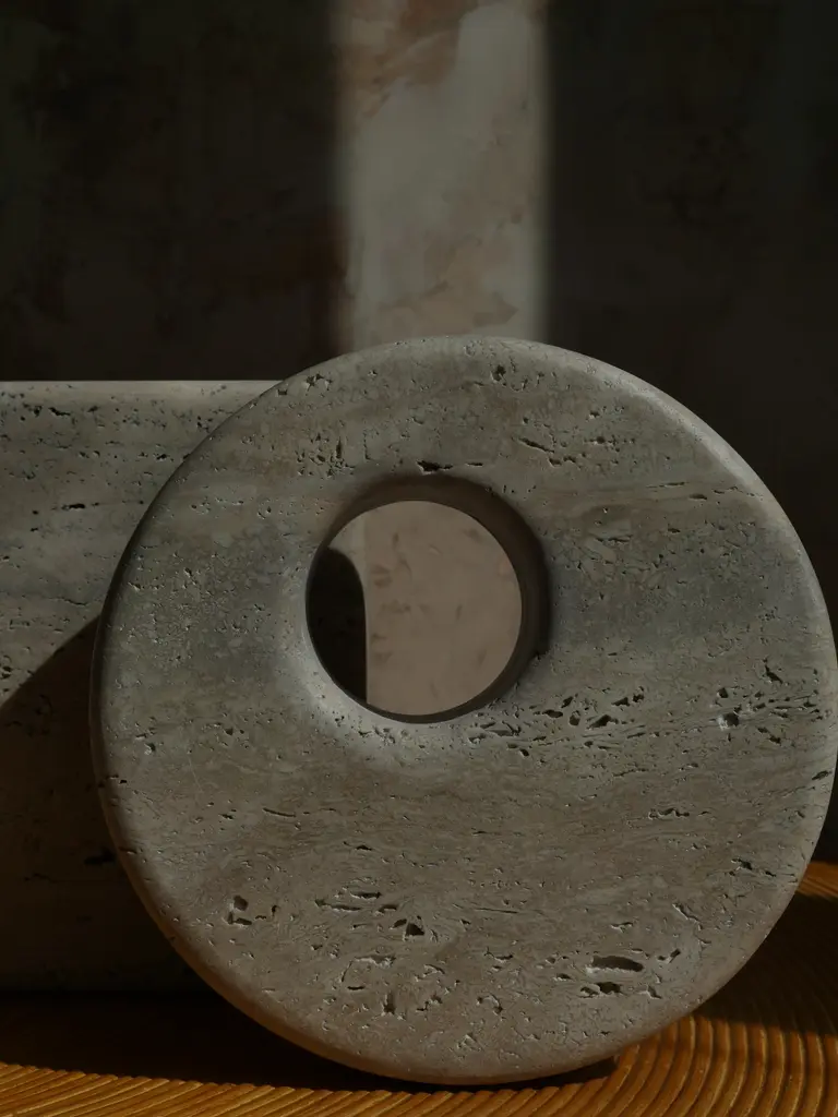 Introducing our custom-made geometric decorative sculpture, created with an artistic vision of simple elegance to elevate your space. Made from Roman Marthe travertine quarried from the mountains of Tivoli, Italy. The solid, unfilled travertine blocks were shipped to Miami , where a seasoned fabricator in business since 1968, honed and handcrafted them to perfection. Each travertine piece features offset holes within their shapes, professionally cored with edges that have been smoothed by hand. This process imparts an organic feel and look to each piece, ensuring a unique and natural touch Our beautiful geometric travertine decor pieces will be made in a limited edition run, with a lead time of three-four weeks.