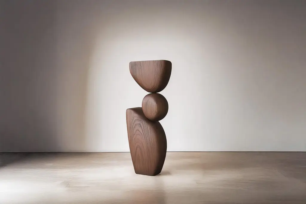 Modern Wooden Totem Lull No69 by NONO – Ideal for Interior Design Projects———Balance and tension are at the core of these sculptures. The interplay between the smooth, rounded forms and solid, angular bases creates a delicate equilibrium that invites contemplation. Fragile elements seem to find strength in their very vulnerability, constantly negotiating their own stillness. The tension remains present, yet never descends into chaos, evoking a quiet pause, a moment of serenity in the motion of life.The juxtaposition of curved, pebble-like shapes against straight-edged bases mirrors the harmony between the organic and the geometric. These forms feel both natural and sculpted, as though shaped by the slow, deliberate hand of nature and the precision of craftsmanship. It’s as if these pieces rest in a moment of perfect balance—a pause between forces that seem at odds, yet together, create something deeper and more profound.This collection embodies a monumental idea—one that celebrates the subtle tension between fragility and endurance. Though the forms may appear delicate, their strength lies in resilience. Each sculpture stands tall and quietly powerful, offering a sense of solace in stillness, a reminder that stability can emerge from the most unlikely structures.These pieces explore the delicate dance between opposing forces, where solace and tension coexist in harmony. The most meaningful moments in life often come from these pauses, from embracing the quiet spaces between movement. These sculptures whisper a truth—that transformation often finds its roots in stillness, in the spaces between tension and release.Each sculpture is crafted from solid wood in our workshop in Mexico City, ensuring no two pieces are ever alike—not only in form, but also in the natural texture and tone of the wood itself. Just as no two trees are the same, each piece carries its own unique character, shaped by the grain and color variations of the wood. This natural diversity is what makes each sculpture truly one-of-a-kind. These works are made to order, allowing the time and care needed to ensure that every piece reflects its own individuality and beauty, celebrating the organic and the serene pause within the material.——NONO is a Mexican design brand with more than 10 years of experience dedicated to the production of interior furnishings, editions, and custom-made projects. At NONO, we create pieces of extraordinary beauty, accommodating the particular needs and tastes of each client with exclusive high-quality designs.————Some details to consider when placing an order with us:• Catalog images are digitally generated. Actual products may slightly vary in texture, grain, and final finish due to natural material differences. Despite these variations, our expertise ensures each piece maintains high quality and matches the intended design.• All of our products are made to order, and the lead time for standard products is estimated to be 9 to 12 weeks, plus shipping time. However, special pieces or sculptures may require a longer lead time.• We offer customization in dimensions and finish for all of our furniture pieces, which may result in additional charges.• We only facilitate freight services by a third party. The client is solely responsible for any associated import/export taxes, as well as any necessary customs paperwork.• We are not responsible for any damages that may occur during shipping or for any customs-related delays.