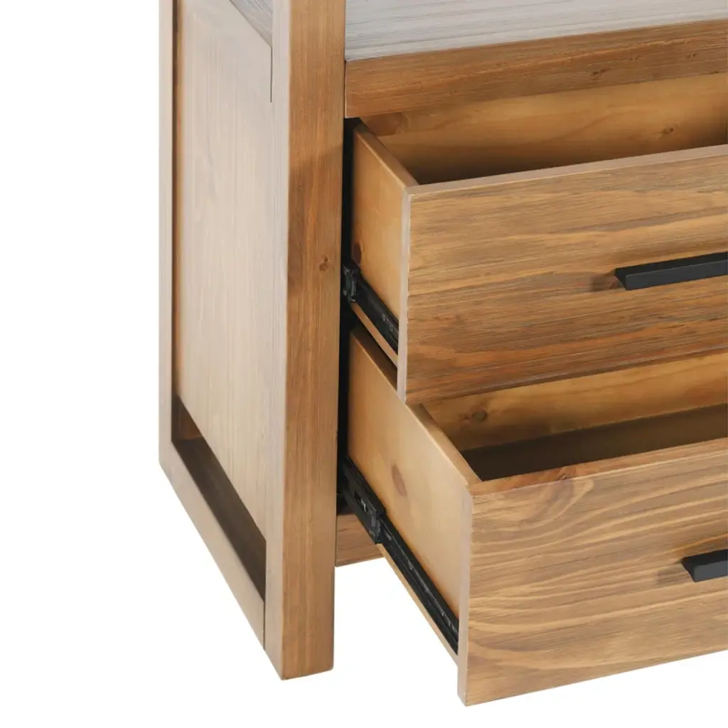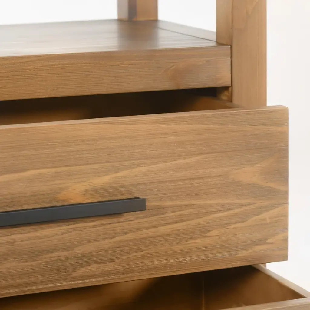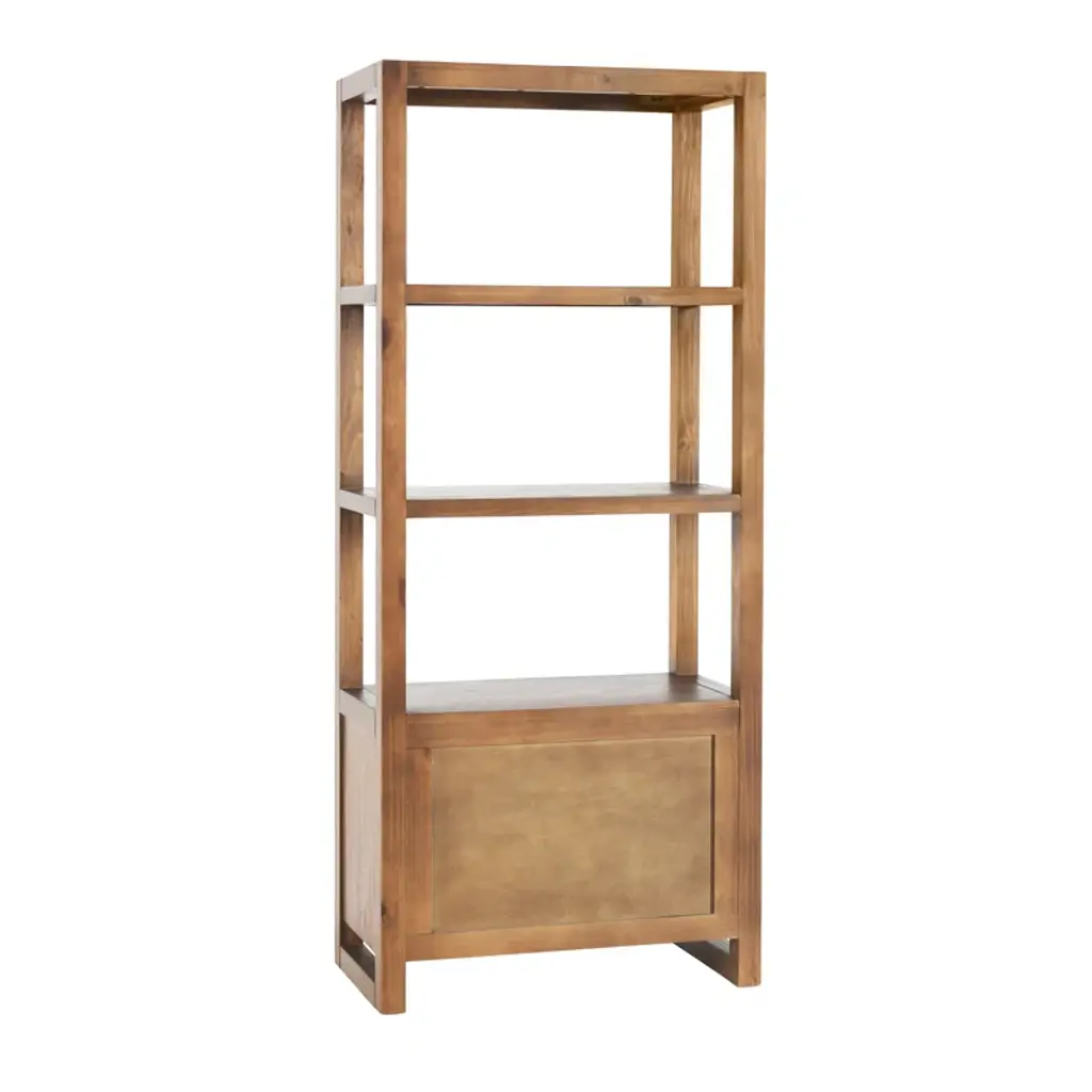 Ample storage space and an airy, inviting silhouette give this bookcase its warm, welcoming vibe. It's made from solid pine wood with a rich caramel-brown finish. We love the way the neutral finish shows off the wood's grain color variation. At the bottom, two drawers offer out-of-sight storage and organization potential. Two shelves provide a place to show off sculptures and potted plants or keep books easily accessible. Best of all, this bookcase arrives fully assembled. It also includes a tip-over restraint device for safety.