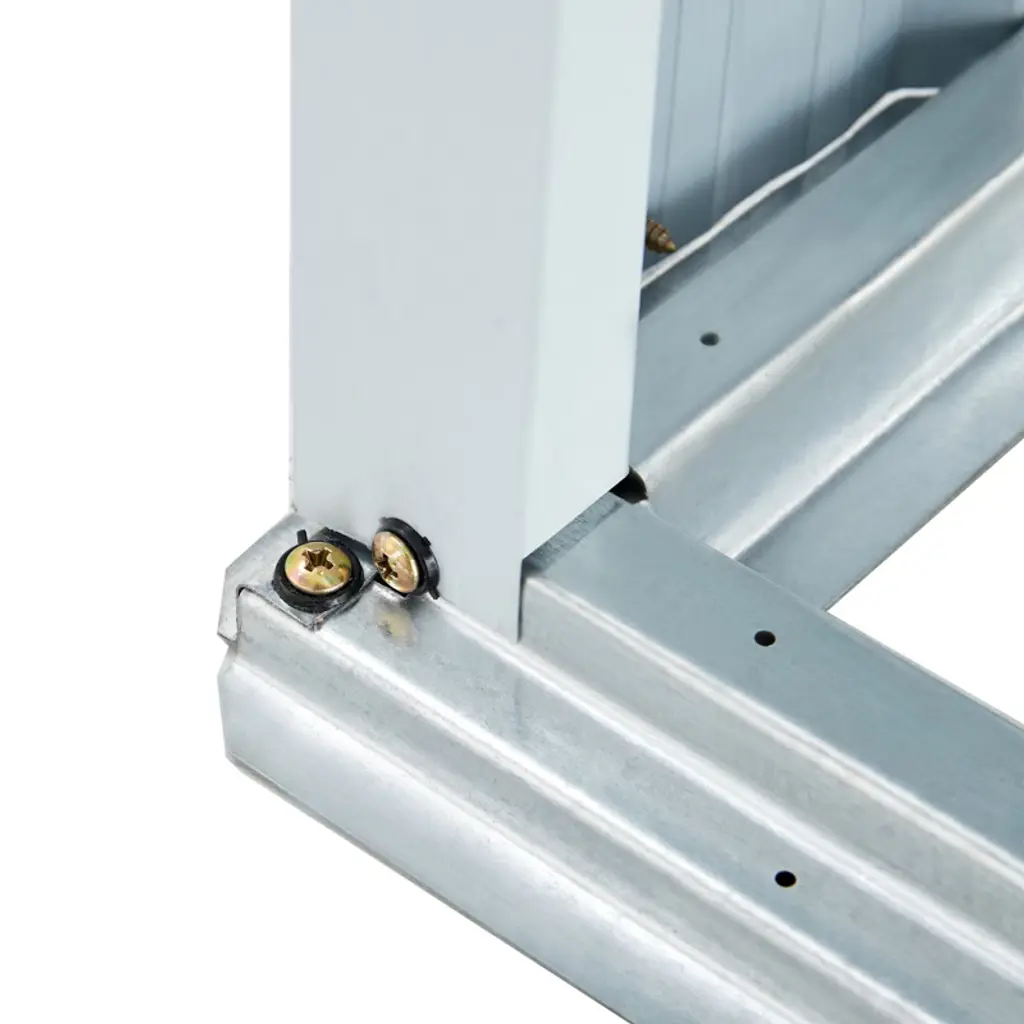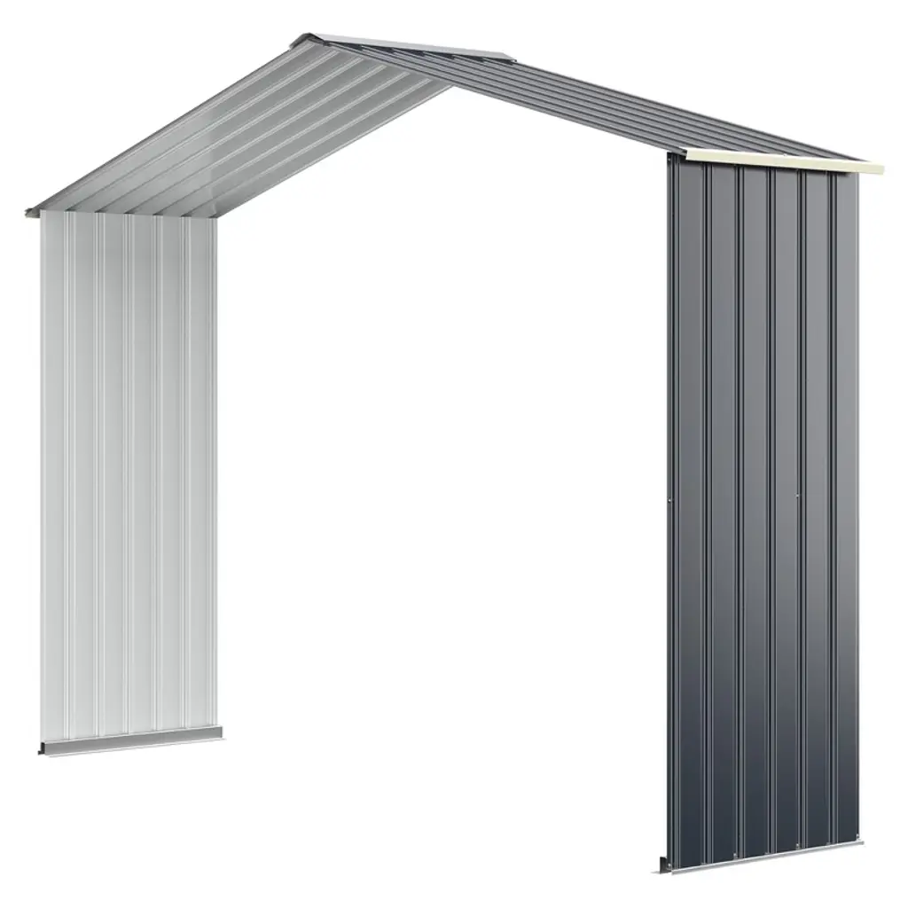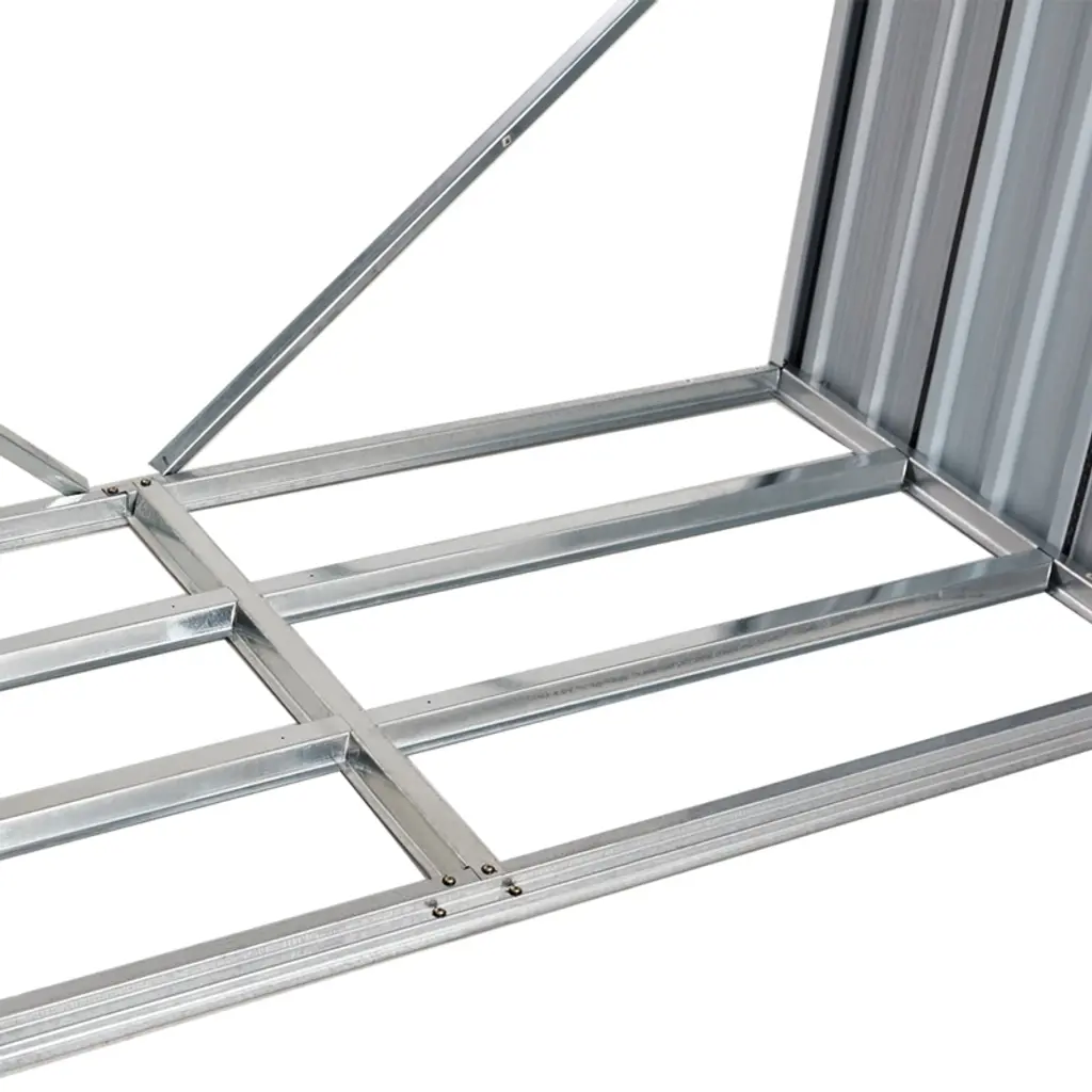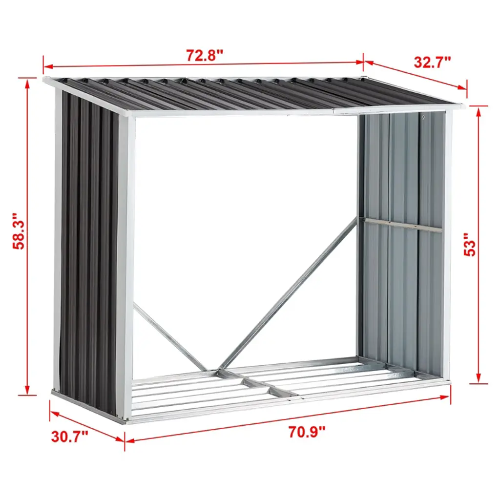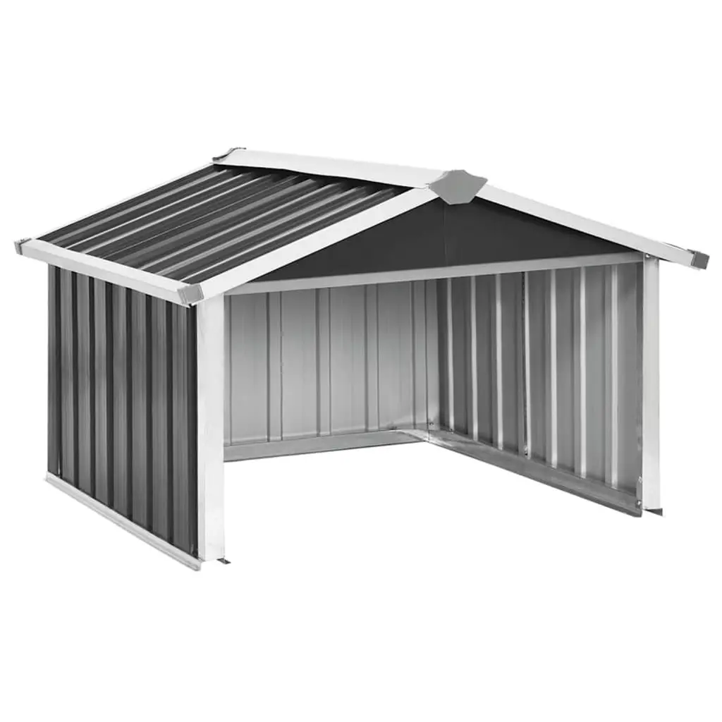 EFFICIENT FIREWOOD STORAGE: Keep your firewood dry and well-organized with our premium galvanized steel storage shed. This robust log storage solution offers ample space to store and season your firewood, ensuring it remains dry and ready for use. STURDY CONSTRUCTION: Our log storage shed is designed with stability in mind. Featuring steel support bars and extra tubes on both sides, it offers a solid and durable structure that can withstand the weight of your firewood. Rest assured, your logs will be safe and secure. LOW MAINTENANCE AND DURABILITY: Crafted from galvanized steel, our firewood storage shed requires minimal maintenance. The galvanized coating provides excellent protection against rust and corrosion, ensuring long-lasting durability and reliability. No more worrying about rotting wood or weather damage. ENHANCED VENTILATION: Proper ventilation is crucial for maintaining the quality of your firewood. Our log store is thoughtfully designed with a steel floor frame and raised floor slats, allowing for adequate airflow. This helps to prevent moisture buildup and promotes proper seasoning, ensuring your firewood stays dry and ready to burn. SMART DRAINAGE SYSTEM: Thanks to its clever sloping design, our log storage shed effortlessly directs rainwater away from your firewood. This prevents pooling and potential water damage. You can trust that your firewood will stay protected and in prime condition, even during heavy rainfall.