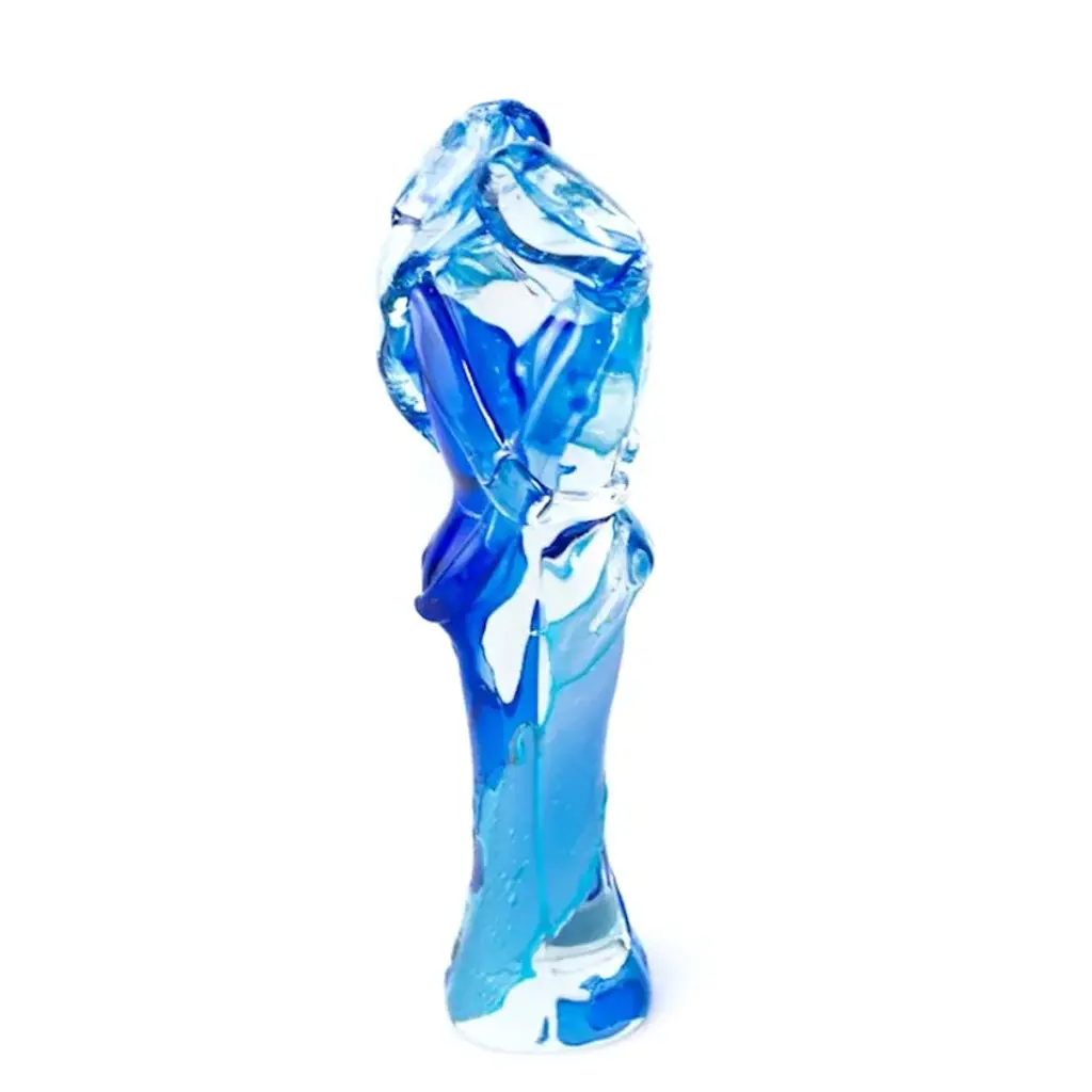 MOLLY&SAM is a murano Glass sculpture of a romantic embraced couple in blue and crystal tones. This unique handmade artwork can be a special gift or a great addition to your home decor. Two souls that come together and blend in one single body, the representation of true love achieved through these marvelous handmade sculptures made of original Murano blown glass.Whether you are looking for a special gift idea for the person you love or are simply an incurable romantic, these unique decorative sculptures are what you need! Fall in love with the delicate interlaces of shapes and colors created by the refined glass and add a touch of romanticism to your home décor. Or conquer the heart of someone special with a precious gift that symbolizes your love. All products are handcrafted and prime production quality. Insubstantial variations in shape, size, colour, small imperfections and/or tiny air bubbles in the glass are not considered defects; they are inevitable and are typical of manual production of the glass and characterize handcrafted production.