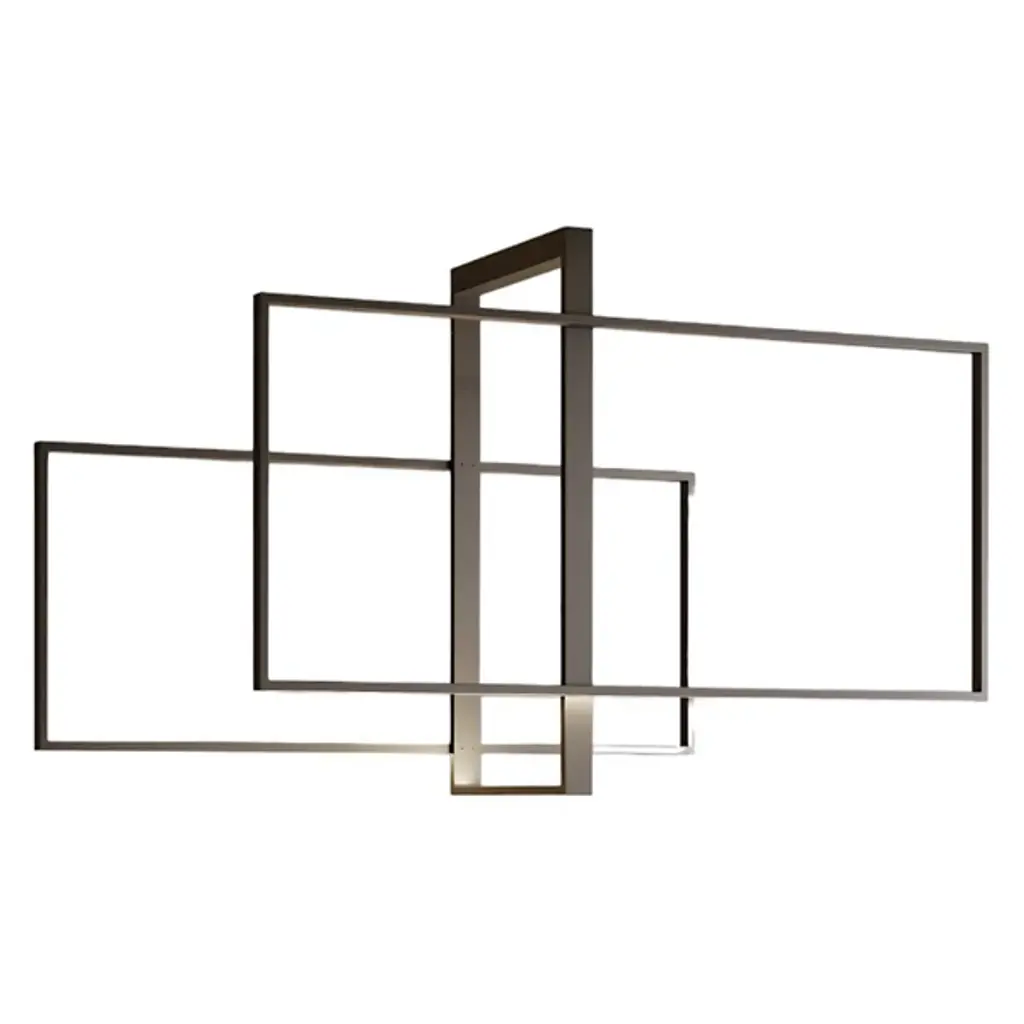 The Mondrian LED Flushmount from Venicem is a clever contemporary design that evokes the interlocking artistry of its namesake. An inspired, rectangular framed sculptural piece descending from a single ceiling mount, threading inset LED lamping inside each arresting frame. This arrangement focuses on fine intersections of the geometric shapes, creating a three-dimensional sculpture that casts slender, angular shadows around it, accompanied by a compounded wash of reflected radiance and strong, energy-friendly illumination.