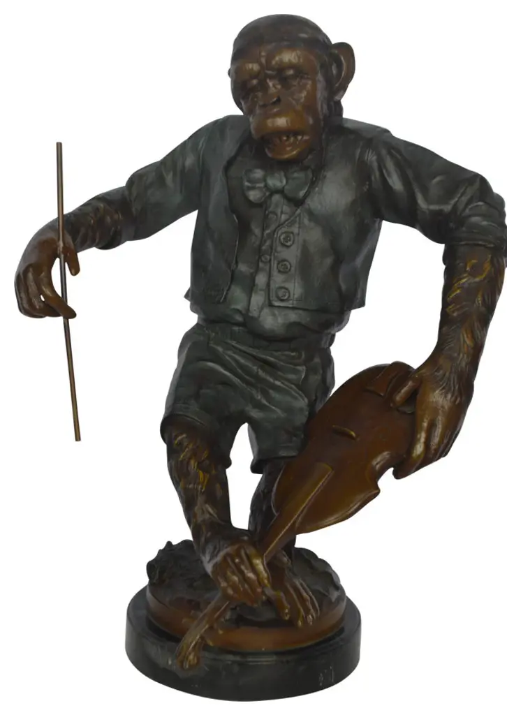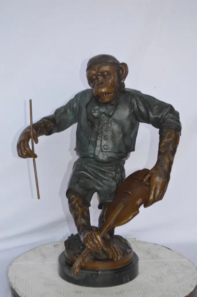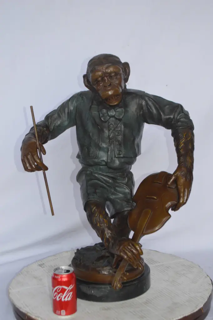Monkey With Violin Bronze Statue - Size: 20"l X 17"w X 26"h.
