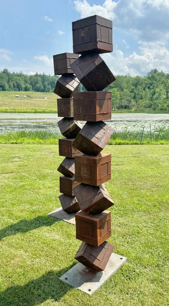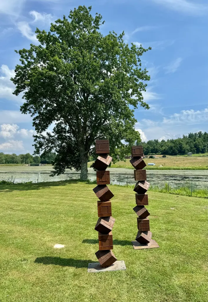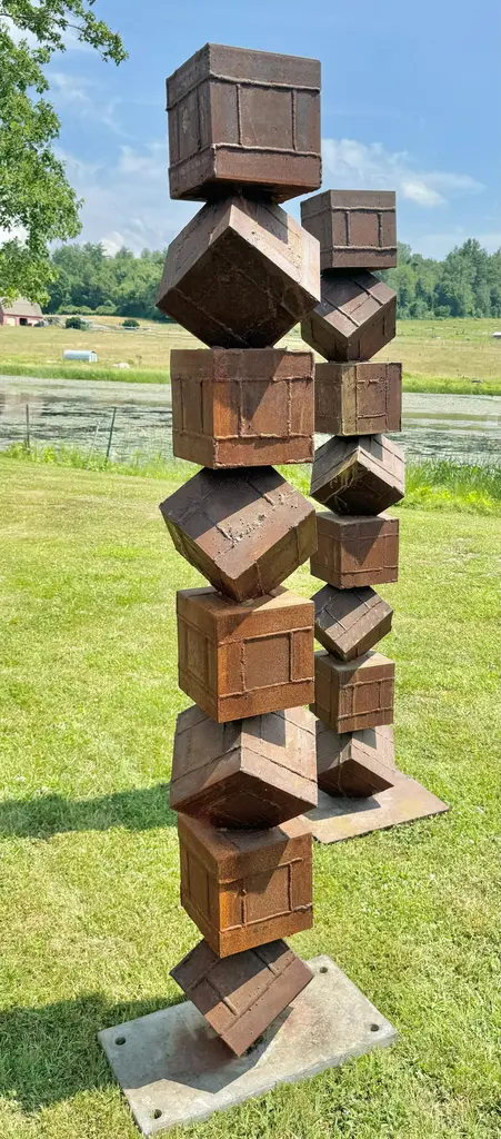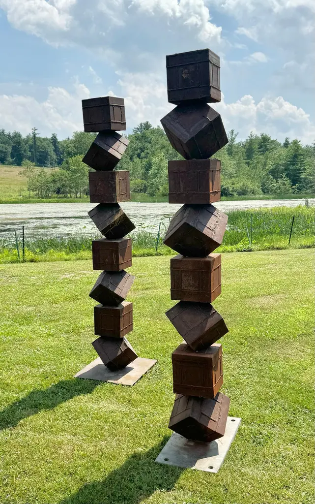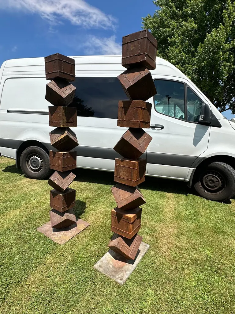 Monumental Brutalist Stacked Cube Steel Garden Sculptures, After David Smith