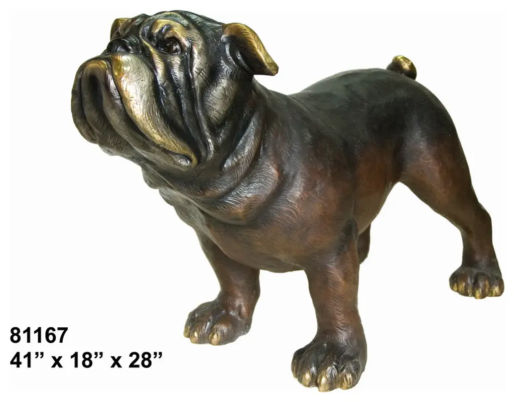 The "Monumental Bulldog" sculpture captures the essence of this lovable pet. Cast in bronze with a deep brown patina, this fun and lovable canine is a great addition to any garden.