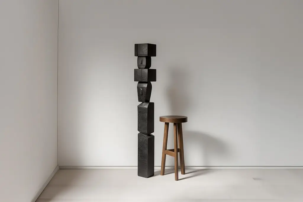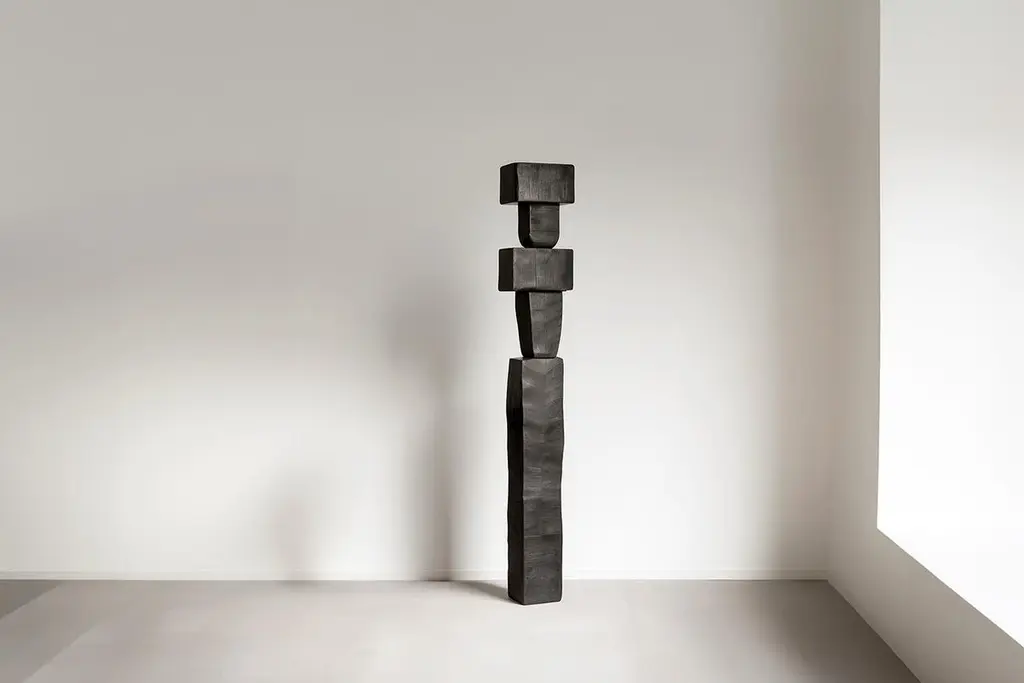 Monumental Wooden Sculpture Inspired in Constantin Brancusi Style, Unseen Force 26 by Joel EscalonaThis monolithic sculpture, designed by the talented Artist Joel Escalona, is a towering example of beauty in craftsmanship. Hand and digital machine made; the standing sculpture stands tall as a monument to the skill of the artist. The wood carved sculpture is a biomorphic pillar with an intriguing, wonderfully undulating surface, crafted with precision and care to create a wonderful patina.Inspired by masters of abstract carving like Constantin Brancusi, Isamu Noguchi and Jean Arp, this outstanding sculpture embodies the spirit of organic art. Each piece is made to order, specific for each client and takes around 3-4 months to complete. Although each sculpture is unique, they all maintain the same spirit, proportions, and dimensions that make them so exceptional.This sculpture, like a beautiful work of art, is prepared to be mounted on a plinth, which is included. The organic sculpture is a beautiful expression of art and nature, a testament to the wonder of the natural world and the power of human creativity. This hand-crafted wood sculpture is a true masterpiece and a magnificent addition to any collection.——NONO is a Mexican design brand with more than 10 years of experience dedicated to the production of interior furnishings, editions, and custom-made projects. At NONO, we create pieces of extraordinary beauty, accommodating the particular needs and tastes of each client with exclusive high-quality designs.————Some details to consider when placing an order with us:• Catalog images are digitally generated. Actual products may slightly vary in texture, grain, and final finish due to natural material differences. Despite these variations, our expertise ensures each piece maintains high quality and matches the intended design.• All of our products are made to order, and the lead time for standard products is estimated to be 9 to 12 weeks, plus shipping time. However, special pieces or sculptures may require a longer lead time.• We offer customization in dimensions and finish for all of our furniture pieces, which may result in additional charges.• We only facilitate freight services by a third party. The client is solely responsible for any associated import/export taxes, as well as any necessary customs paperwork.• We are not responsible for any damages that may occur during shipping or for any customs-related delays.