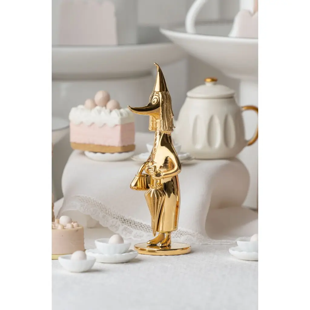 Skultuna's Fillyjonk figurine is part of the Moomin x Skultuna collection in which Tove Jansson's most beloved Moomin characters have been given an elegant golden glow: the tiny sculptures are made of steel and plated with genuine 18-carat gold. The high-quality materials and luxurious finish make the figures timeless and durable – they bring a dose of playful elegance to everyday life, both in the children's room and in other rooms of the home. Brighten up your desktop with your favorite character or decorate your bookshelf with the entire Moomin Family!