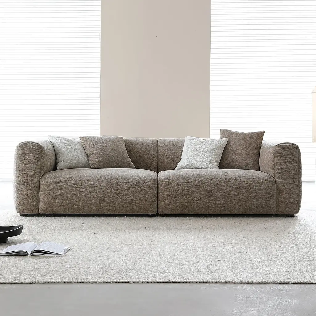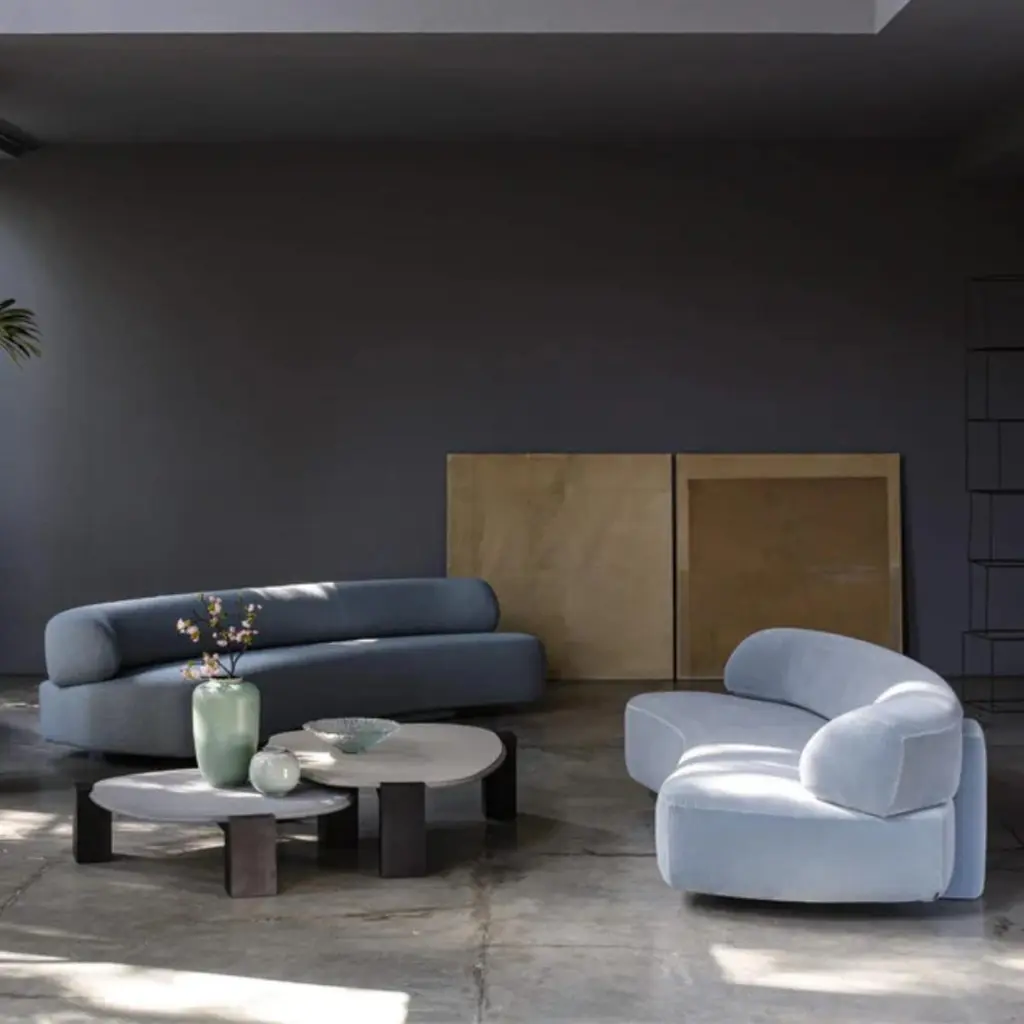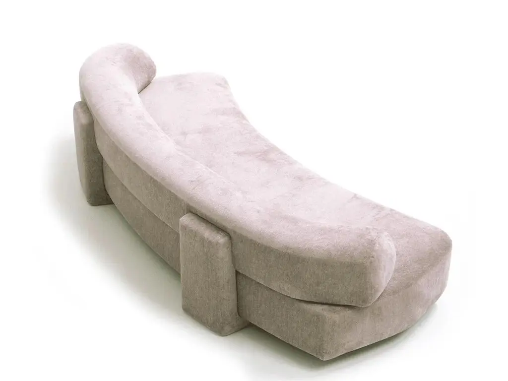 The Gogan collection takes its name from nature and in particular from Japanese stones rendered smooth by time and water, which provided the inspiration for this project. This is the name given to the Japanese stones placed to protect and embellish the banks of rivers and lakes. The sofa’s form, as much as the armchair’s form, in fact reminds us of flat stones sculpted by wind and water, solid yet smooth enough that you can lie on them.Just like in rock sculptures, where stones maintain their balance by being carefully positioned and interlocked, it is the shape that maintains the balance between the elements on the Gogan sofa and armchair, which is not overly regular. By playing around with gravity and balance, we can make normally heavy shapes lightweight.The seats are soft and irregular with the centre of gravity being slightly inclined towards the rear. This gives exceptional comfort and allows the backrest to be kept lower. The backrest and seat are joined by abutments, which lend the sofa a sense of lightness, so that it appears as if it was suspended above the ground.Textile: Orsetto, Natural A8844 Fire tests: US Cal.Tech.Bull.117 Abrasion resistant: 50.000 giriDIMENSIONS:W. 253 x D. 123 x H. 70 cm