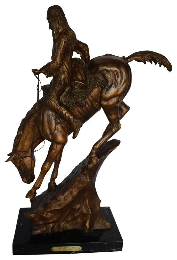 Mountain Man Bronze Statue, A Remington Replica - Size: 18"l X 8"w X 28"h.
