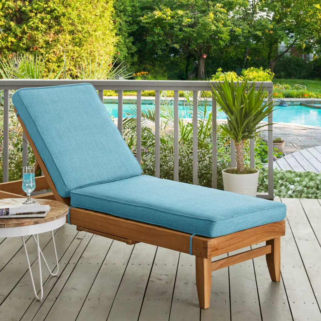 Set a relaxing tone on your back porch or patio with the help of this luxurious hinged lounge cushion! Featuring a gorgeous solid fabric in a rich, blue hue, this lounge cushion is sure to add style to your space and encourage you to take advantage of your outdoor space much more often! Crafted out of a performance material right here in North America, this lounge cushion is built to withstand sun, stains, and all other outdoor elements. Sunbrella is founded on the belief that fabrics should be both beautiful and functional. We began in the 1960s with the challenge of creating an awning canvas with a substantially longer lifespan than cotton. Sunbrella has become widely adopted for shade structures, marine canvas and upholstery fabric for both outdoor and indoor applications.Our textiles are made with close attention to design detail, and engineered with robust performance characteristics that provide resistance to fading and degradation from sunlight and chemical exposure. The fabric is tactile yet durable, has industry-leading environmental characteristics, is easy to care for and offers long life wherever it''s used.No Sunbrella manufacturing facility in the world sends waste to landfills. A result of our focus on efficiency, this monumental achievement allows Sunbrella to lead by example, putting sustainability into practice every day across the globe. Our unique coloring process not only makes Sunbrella fabrics fade-resistant, it also conserves more water than conventional dyeing processes. At Sunbrella we believe it''s important to preserve the environment around our facilities. We work to conserve the plant and animal life that is native to the area and encourage our employees to plant gardens designed to provide fresh food and nourish local wildlife.We stand behind our fabrics with a guarantee that''s the best in the industry: a 5-year limited warranty for upholstery. This warranty protects the original purchaser of Sunbrella fabric. This warranty protects against Sunbrella fabric becoming unserviceable due to color or strength loss from normal usage and exposure conditions, including sunlight, mildew and atmospheric chemicals.