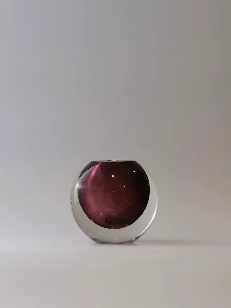 Bold yet refined, the Large Murano Colored Glass Sphere Sculpture – Deep Plum brings timeless craftsmanship into a contemporary form. Hand-blown by skilled artisans using traditional Murano techniques, this solid glass orb features a deep plum core encased in crystal-clear glass. The interplay of color, light, and transparency gives this sculptural piece its captivating depth—perfect as a standalone accent or part of a curated tabletop arrangement. A modern collectible that celebrates material purity and artisanal precision.