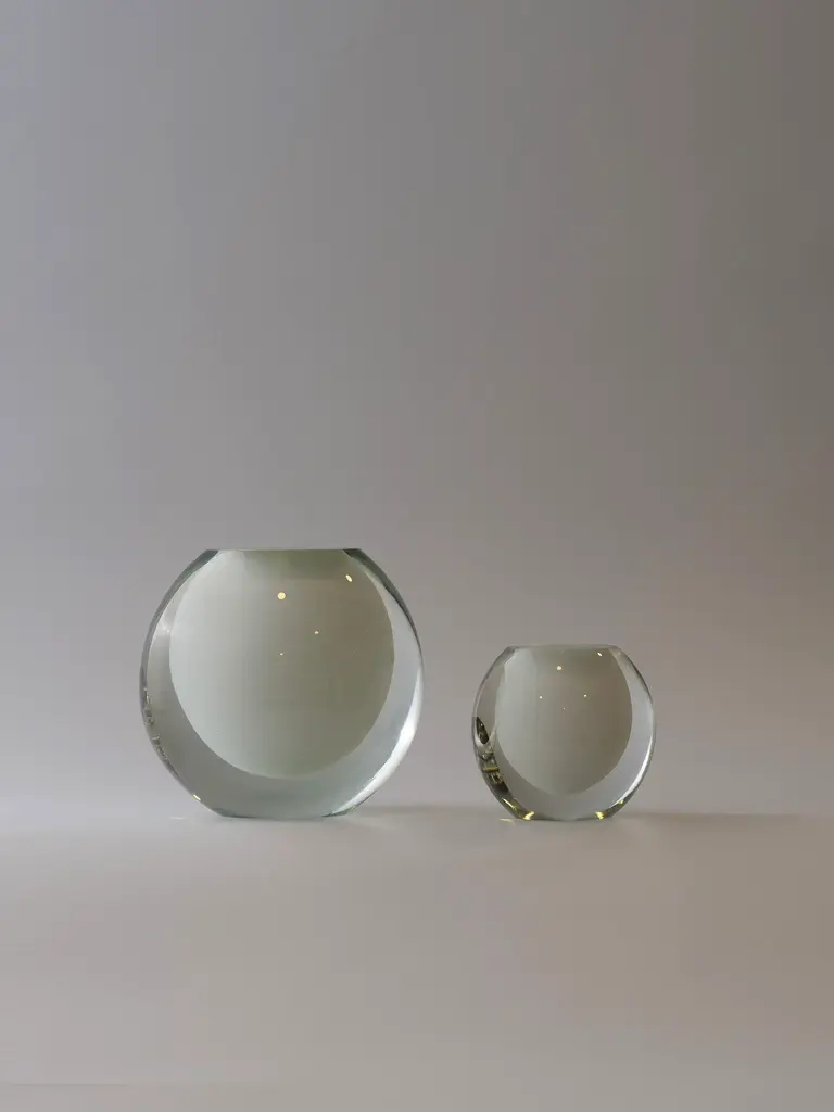 Elegant and ethereal, the Large Murano Colored Glass Sphere Sculpture – White Core captures the quiet beauty of Venetian glass artistry. This sculptural piece is hand-blown using traditional Murano techniques, featuring a milky white inner core enveloped in crystal-clear glass. Its minimalist form and luminous glow bring a sense of calm and balance to any interior. Whether styled as a standalone statement or combined with other colorways, it evokes purity, craftsmanship, and timeless design.