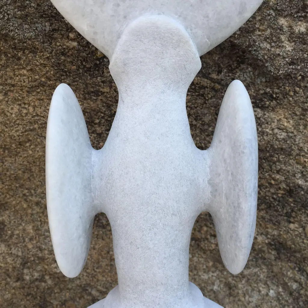 Music Resonance hand carved marble sculpture by Tom Von KaenelDimensions: D 8 x W 41 x H 65 cmMaterials: MarbleTom von Kaenel, sculptor and painter, was born in Switzerland in 1961. Already in his earlychildhood he was deeply devoted to art. His desire to bring beauty to the world is Tom vonKaenel’s inspiration, drive and source for the creation of his works.Already during his training as a technical draughtsman and later as a teacher of pictorial design, he devoted himself to painting and three-dimensional work. Tom von Kaenel has exhibited his work in various solo and group exhibitions. For seven years he was represented by Galerie Ute Barth in Zurich.Today Tom von Kaenel lives and works on the island of Naxos. Everything in his environment inspires and shapes his work. He creates objects and sculptures out of Naxian marble in craftsmanship liveliness and timeless beauty.