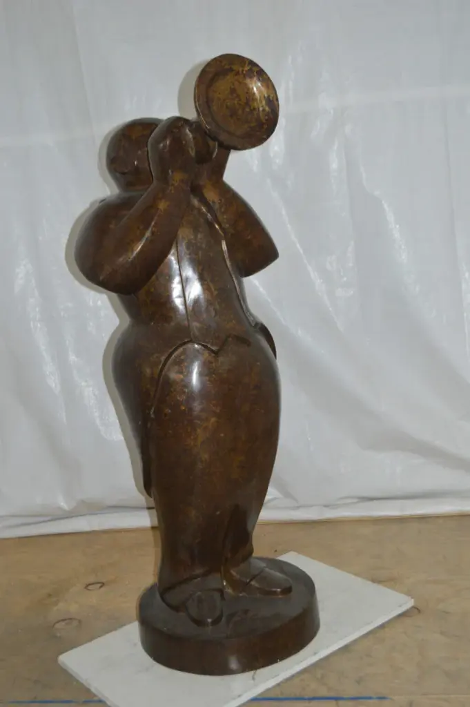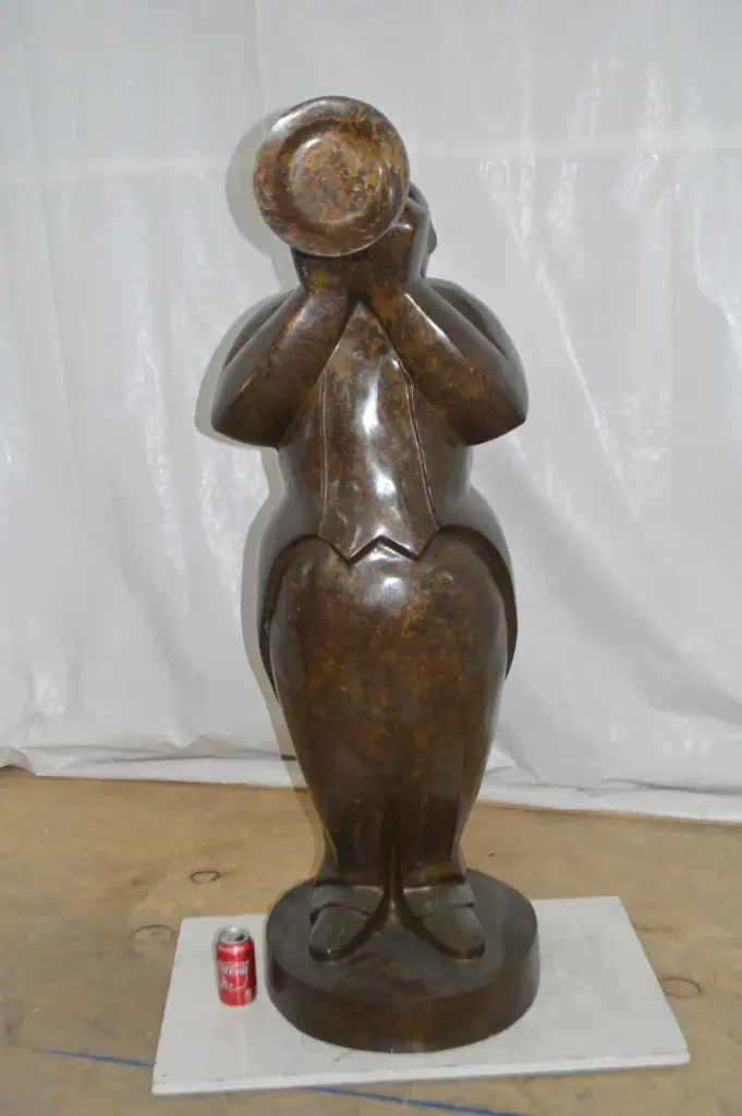 This is a large, beautiful bronze statue of a musician. The artist clearly depicts the talent and enthusiasm that the musician has in their instrument and performance. One can only imagine a large audience there to hear the music performed. This is a wonderful large, bronze statue for any home or garden. Size: 24"L x 20"W x 56"H. Weight is: 135Lb