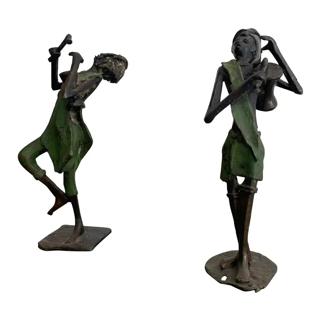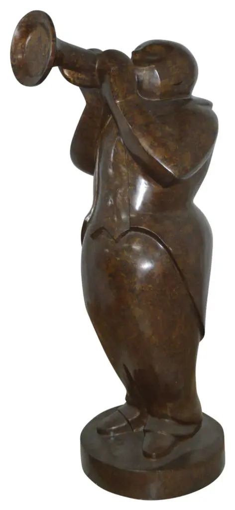 Musician Playing The Trumpet Bronze Statue - Size: 24"l X 20"w X 56"h.