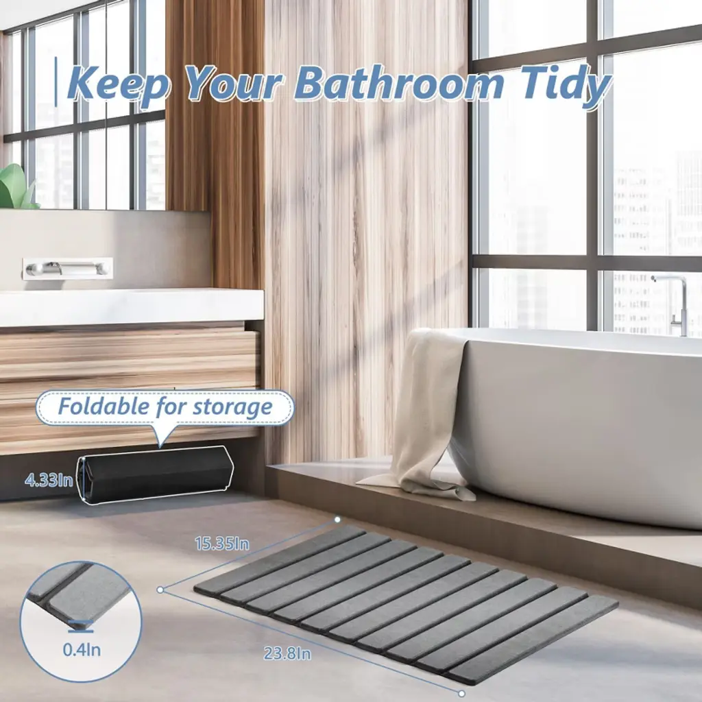 Napei Foldable Diatomite Stone Bath Mat With Anti-slip Rubber Backing,gray