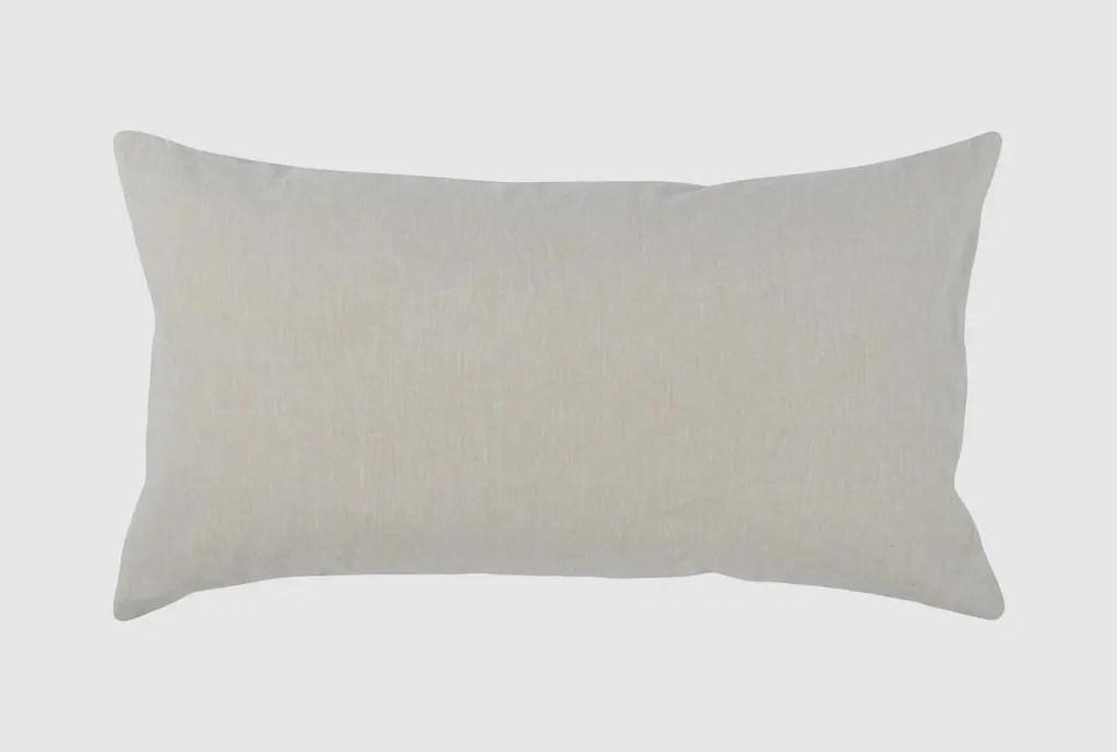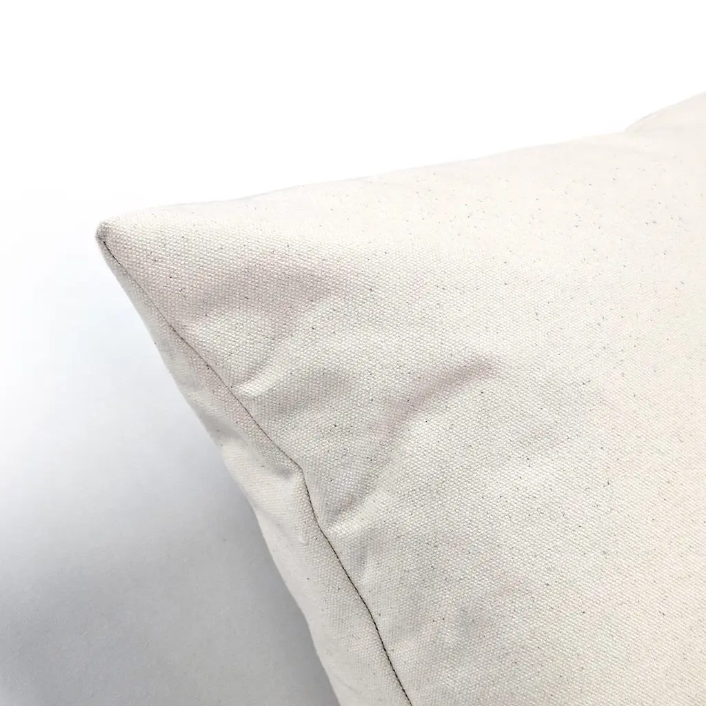 Experience robust comfort with our Natural Cotton Canvas Lumbar Throw Pillow. This resilient 16x24-inch pillow is crafted from 11.5oz 100% cotton duck canvas, ensuring extreme durability. Its natural cream color features faint, authentic speckles - tiny bits of unbleached cotton plant, lending a distinctive rustic appeal. Providing supportive comfort and versatile style, this washable pillow softens beautifully over time. Size: 16"x24" Rectangular Fabric: 100% Cotton Canvas Same fabric on front and back Knife edge seams. Inside seams are reinforced for strength and durability. Hidden zipper closure in bottom seam of pillow cover Hand wash cold. Air dry flat