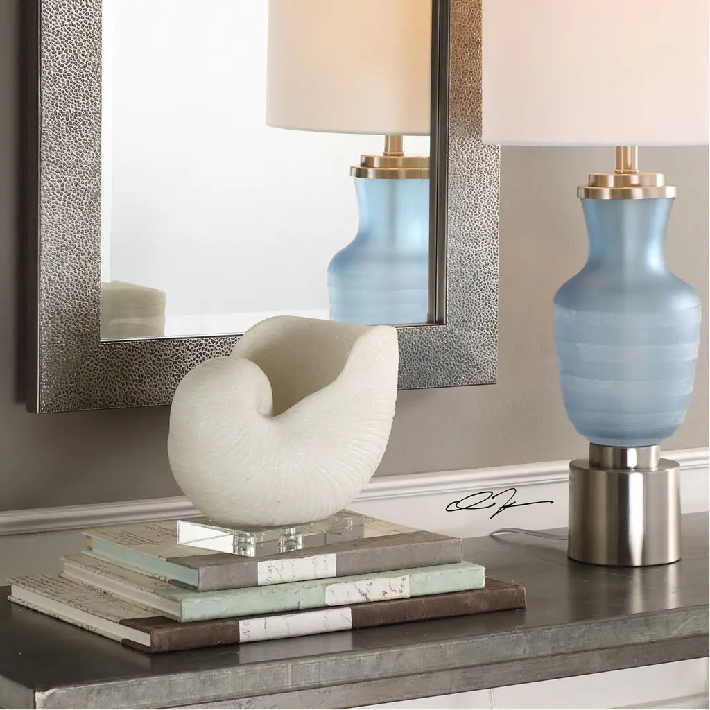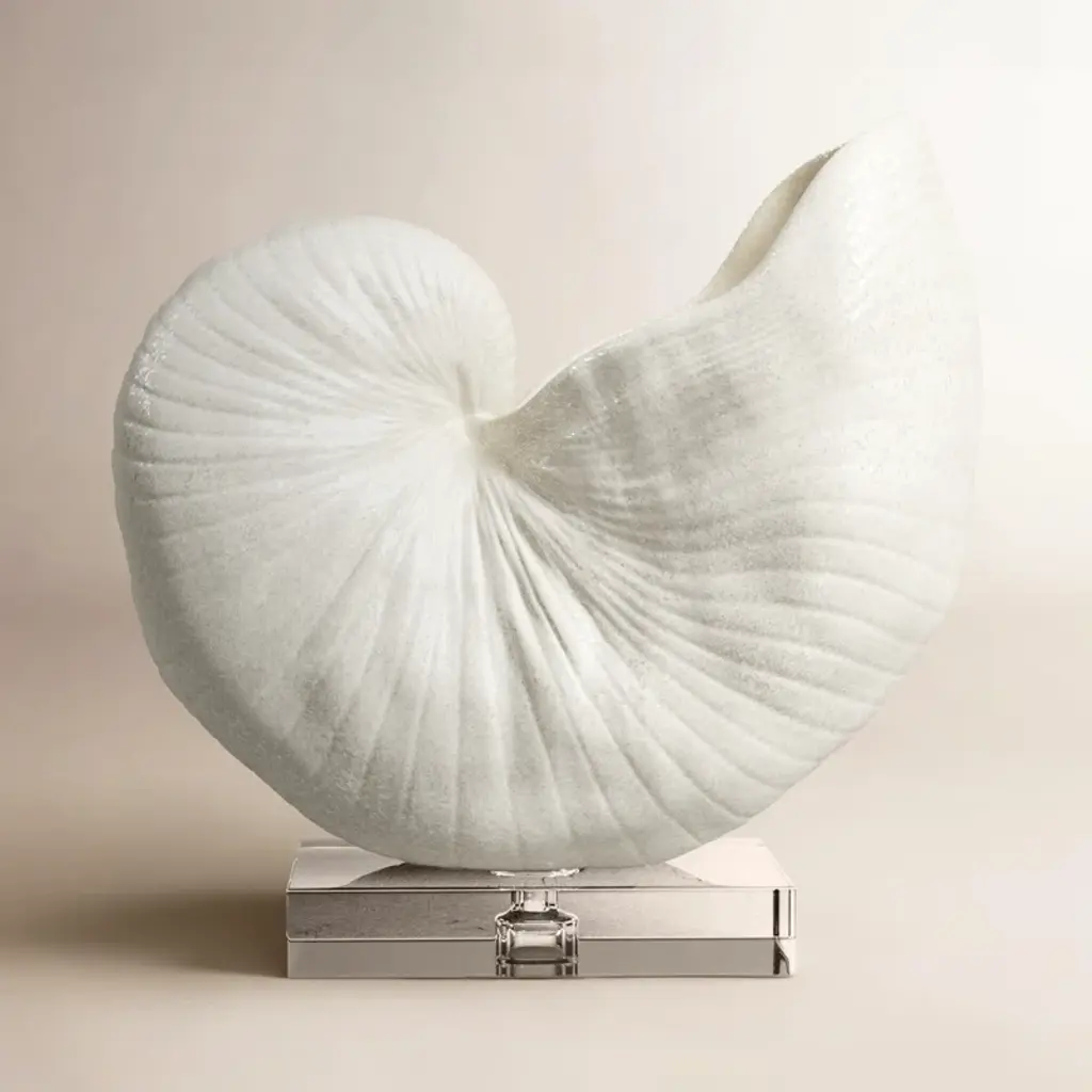 An Over-sized Nautilus Shell, Cast With A Granular Stone Textured Finish And Set On A Crystal Base.
