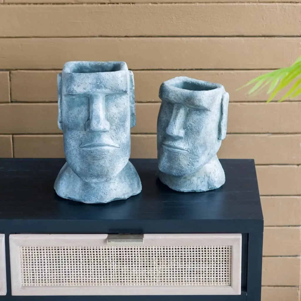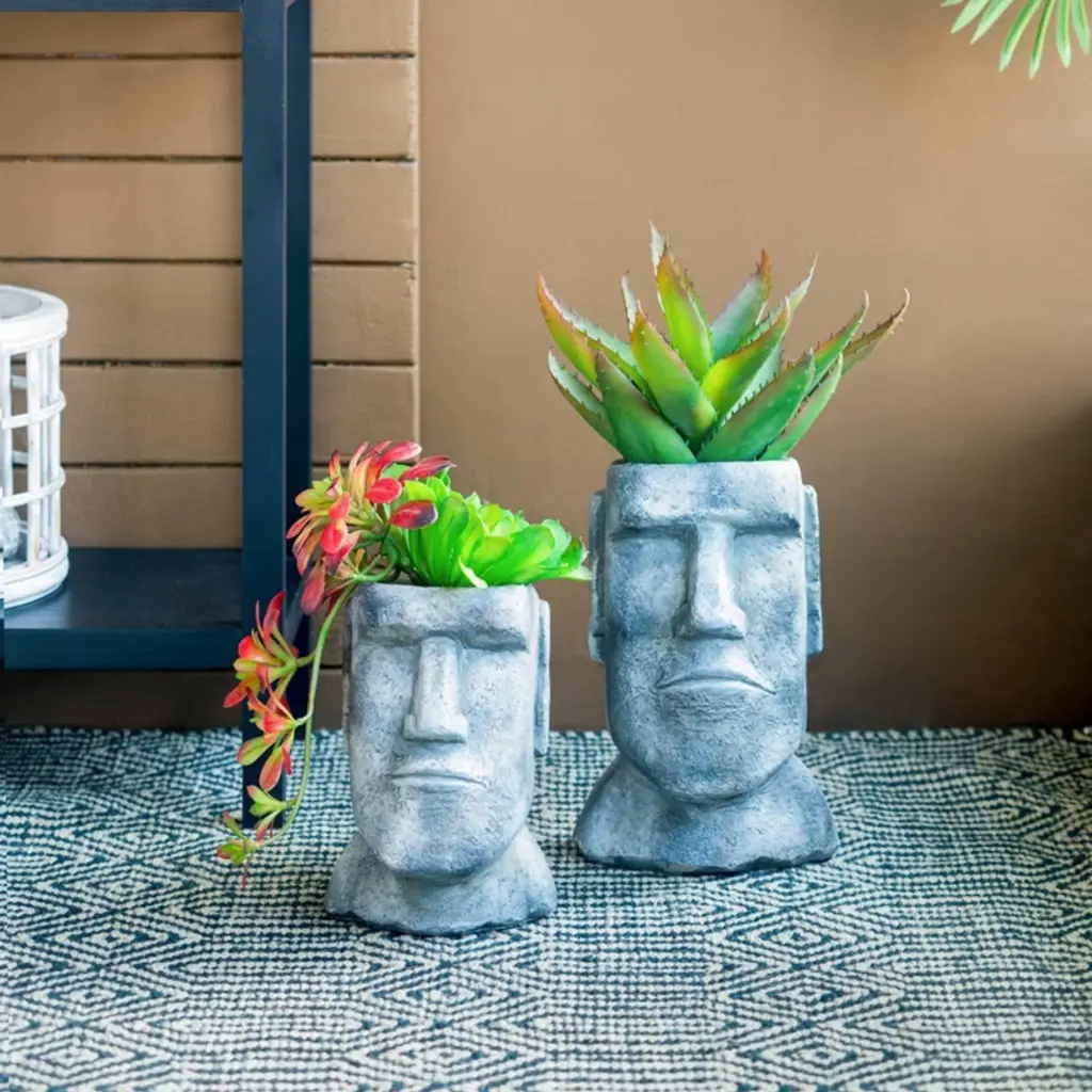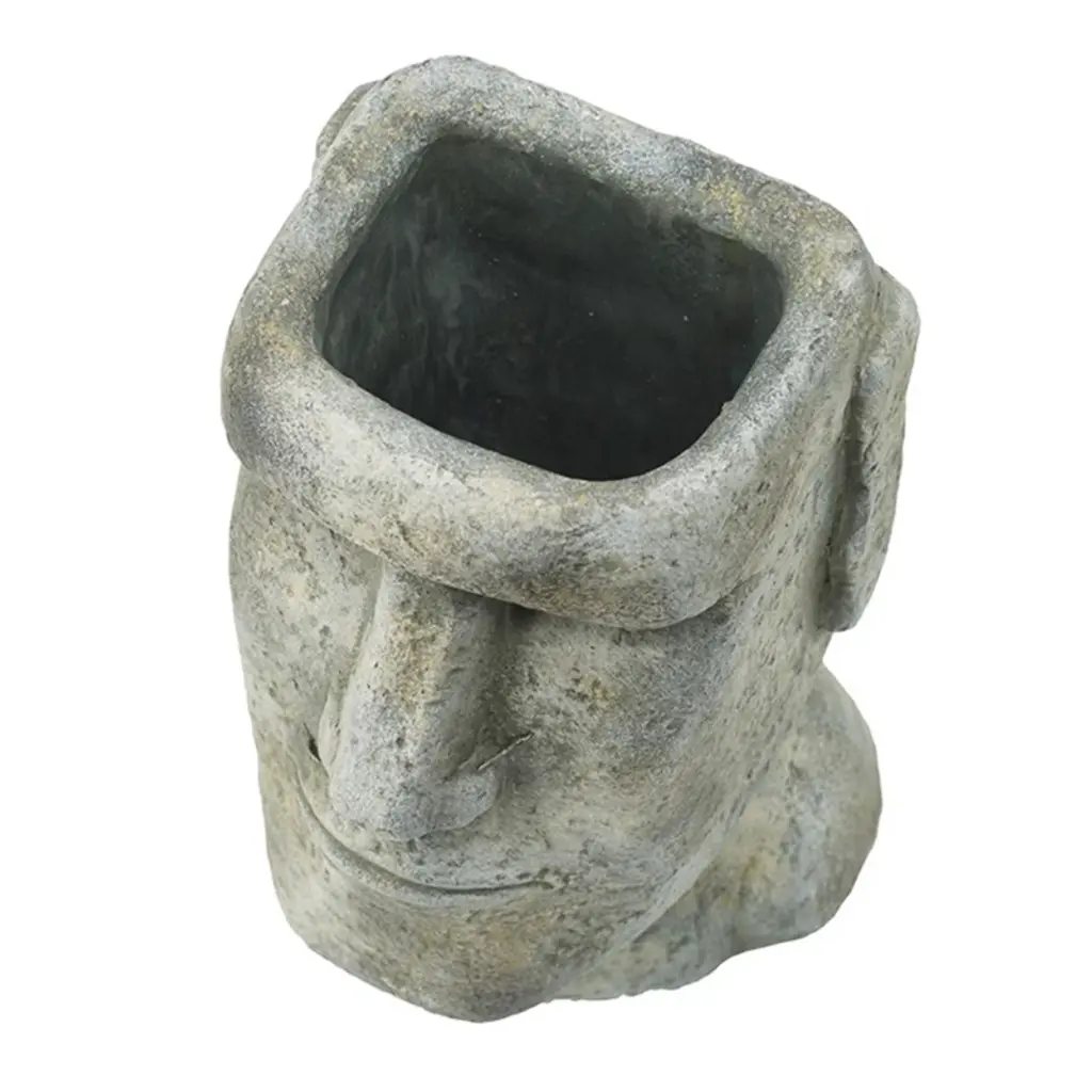 NAYSAYE Planters Easter Island Cement Planter brings a whimsical touch to your space with its unique design inspired by the iconic Easter Island statues. This eye-catching planter with strong facial features serves as a conversation starter, adding personality to any garden or indoor area. Made from durable cement, it’s perfect for small to medium-sized plants and built to withstand outdoor conditions. Its compact yet spacious design offers the perfect balance for showcasing greenery while fitting easily into your space.