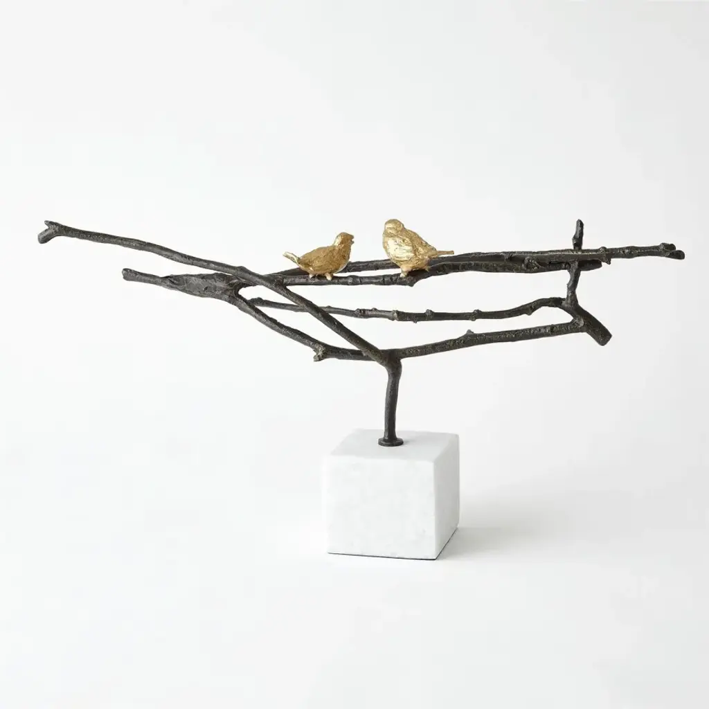 Love birds create their own home in the Nesting Bird Sculpture in Bronze set atop a white marble plinth. This sculpture is romantic and warms the heart. The perfect accessory for any home environment. From a fashion forward perspective, Global Views offers accessories, furniture, statement lighting, and an assortment of rugs and mirrors to add beauty and joy to your home.