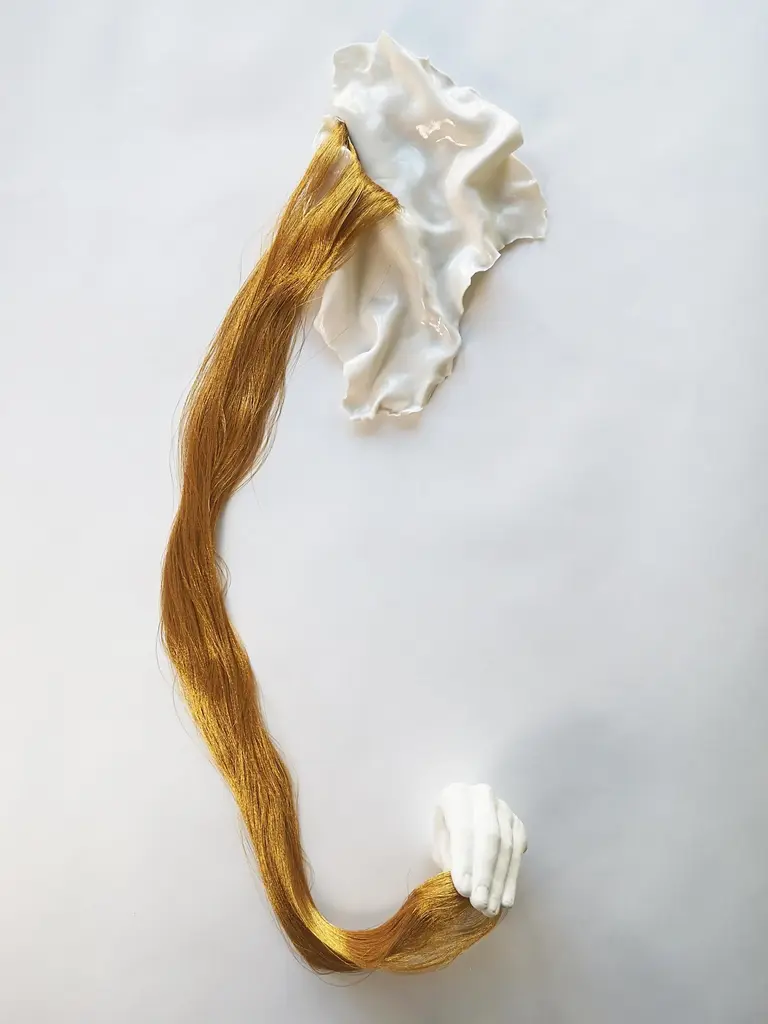 New Territory Wall Sculpture by Dora StanczelOne of a Kind.Dimensions: D 10 x W 48 x H 108 cm.Materials: Porcelain, metal and thread.I create bespoke and luxurious porcelain pieces with a careful aesthetic. Beyond the technical mastery of casting, what interests me is the unexpectedimperfection that occurs during the creative process. I like to make it a focal point of my pieces. For me, the intelligence of the hand lies in the collaboration with the material and not in its control.My pieces are the fruit of long experiments where technical processes arediverted. I obtain the harmony of forms by constantly seeking the limit of the material of the porcelain.I tear, fold, deform, glue, drip porcelain in a specific way that reveals the fragility and strength of the material. Indeed, a piece gains its strength through its final firing where the previously fragile material will finally be revealed. The beauty is in this transformation by the fire!My unique and stunning artworks are influenced by waves, curves and colors that I see when I go out on the ocean on my boat. This natural force and ecosystem essential to life is my source of inspiration.I consciously develop a vocabulary of forms based on the errors and theunexpected of this process. To obtain a unique piece, I divert the technicalprocess of porcelain.