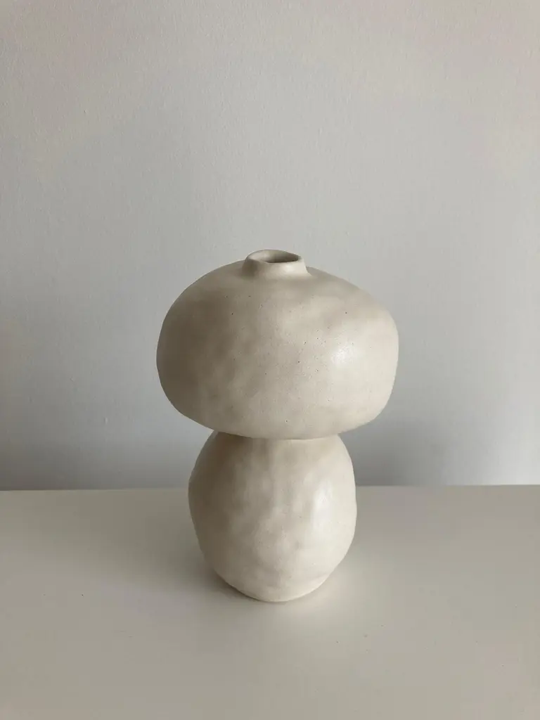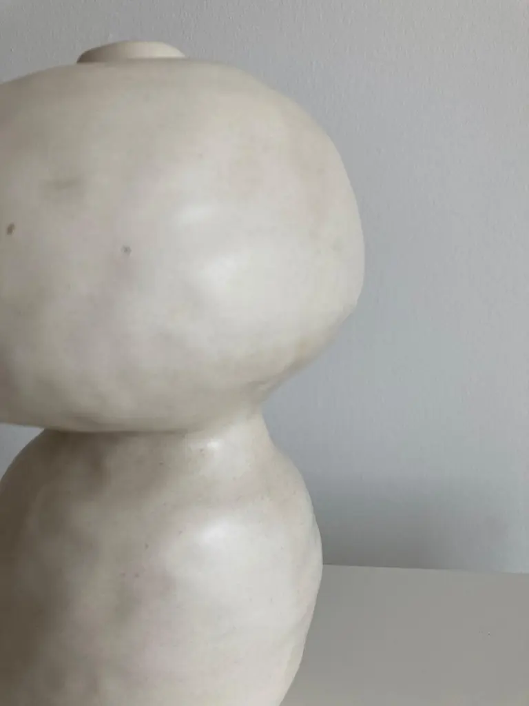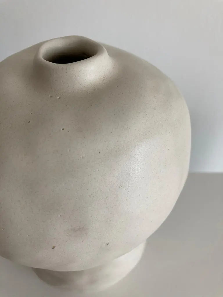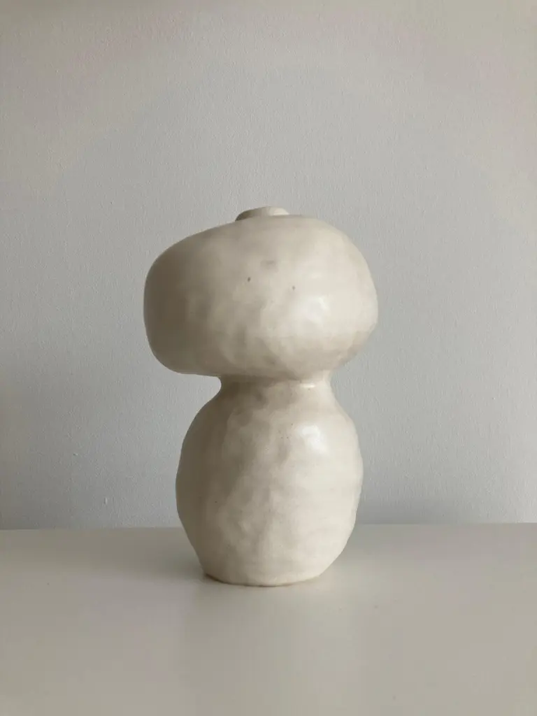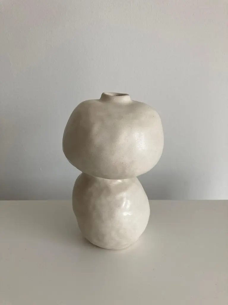 No.98 stoneware sculpture, Tonfisk by Ciona Lee One of a KindDimensions: Ø 13 x H 19 cmMaterials: White stoneware, satin cream glazeVariations of size and colour availableTonfisk is the ceramic practice by Ciona Lee, a Korean-Italian artist and designer based in London. All of her work is hand built, a method that she loves for the freedom it gives to shape things liberally with her hands. Her process is rather intuitive and starts with a shape in her mind which can evolve organically during the making. This gives each piece its unique and imperfect character. She focuses on the creation of vases and sculptural pieces that are quirky and intentionally lumpy.