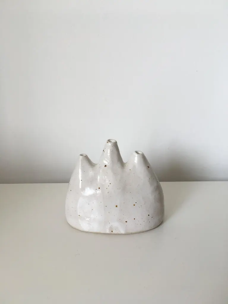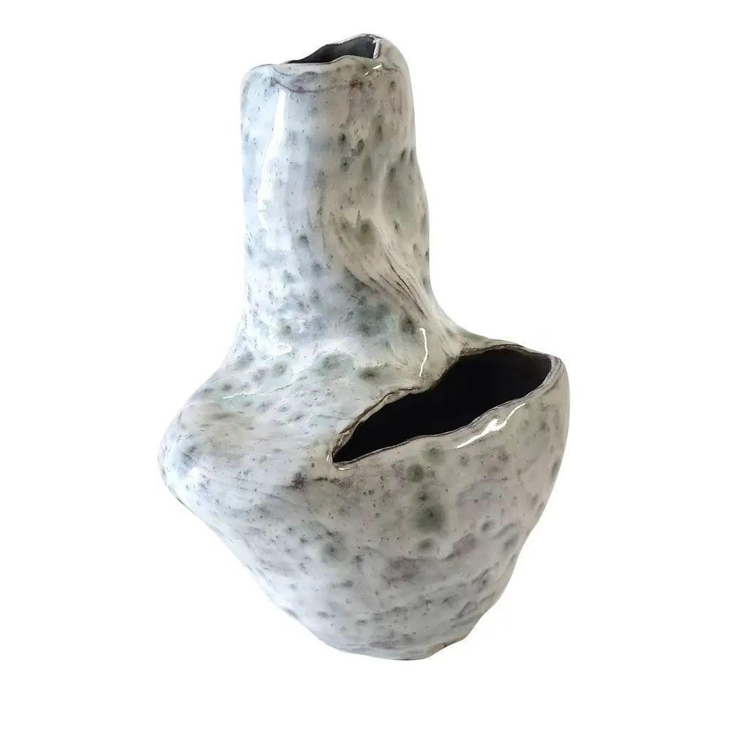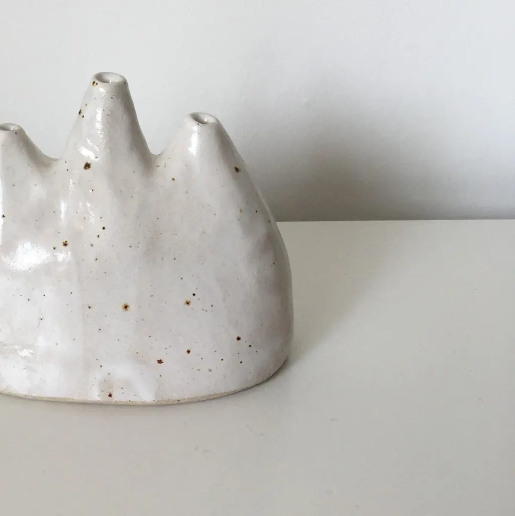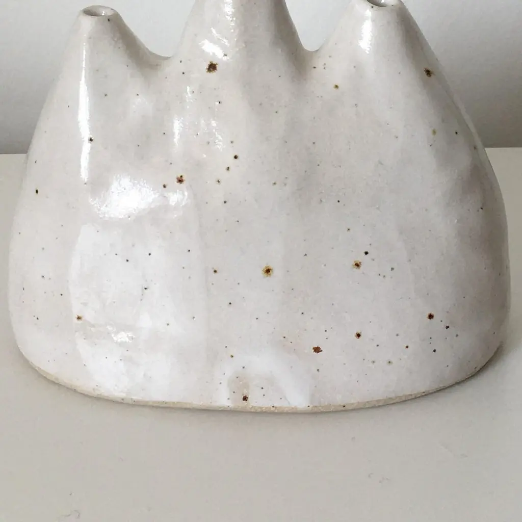 No.18 stoneware sculpture, tonfisk by Ciona LeeOne of a kindDimensions: W 12 x D 7 x H 10 cmMaterials: speckled stoneware, shiny white glazeVariations of size and colour available,Tonfisk is the ceramic practice by Ciona Lee, a Korean-Italian artist and designer based in London. All of her work is hand built, a method that she loves for the freedom it gives to shape things liberally with her hands. Her process is rather intuitive and starts with a shape in her mind which can evolve organically during the making. This gives each piece its unique and imperfect character. She focuses on the creation of vases and sculptural pieces that are quirky and intentionally lumpy.