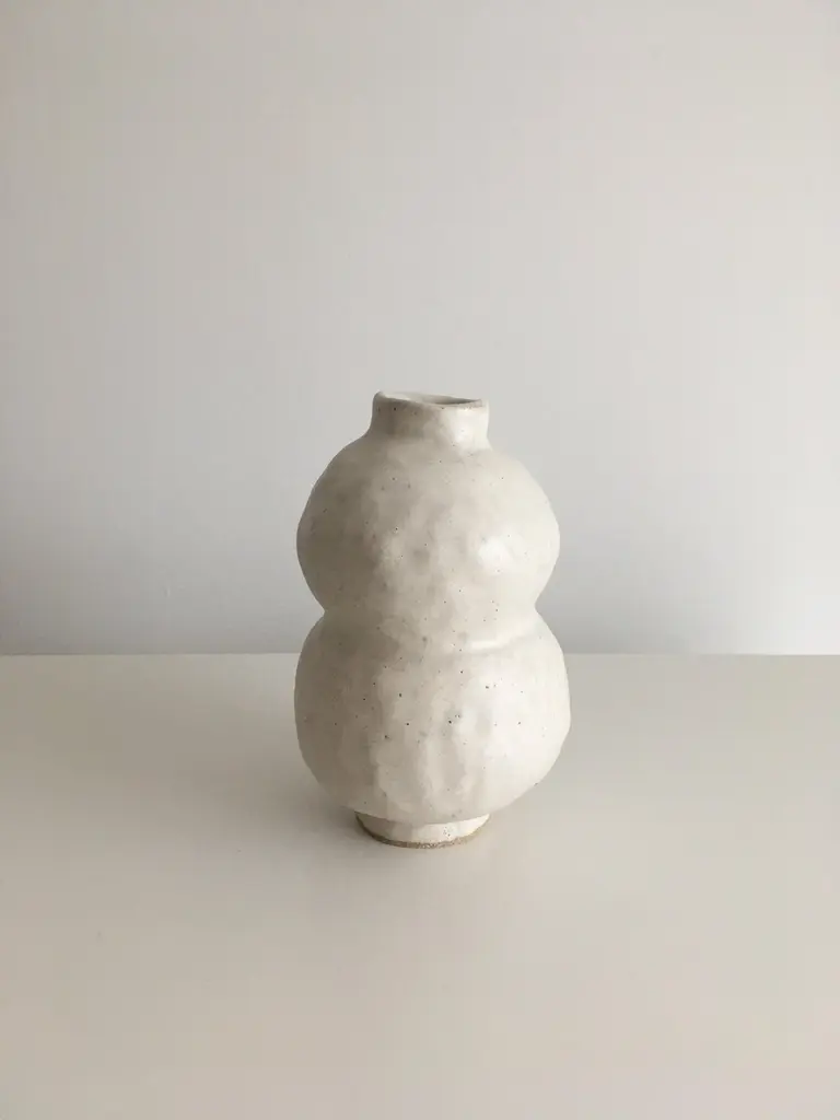 No.89 stoneware sculpture, Tonfisk by Ciona Lee One of a KindDimensions: Ø 9 x H 14 cmMaterials: Grogged stoneware, satin cream glaze.Variations of size and colour available.Tonfisk is the ceramic practice by Ciona Lee, a Korean-Italian artist and designer based in London. All of her work is hand built, a method that she loves for the freedom it gives to shape things liberally with her hands. Her process is rather intuitive and starts with a shape in her mind which can evolve organically during the making. This gives each piece its unique and imperfect character. She focuses on the creation of vases and sculptural pieces that are quirky and intentionally lumpy.