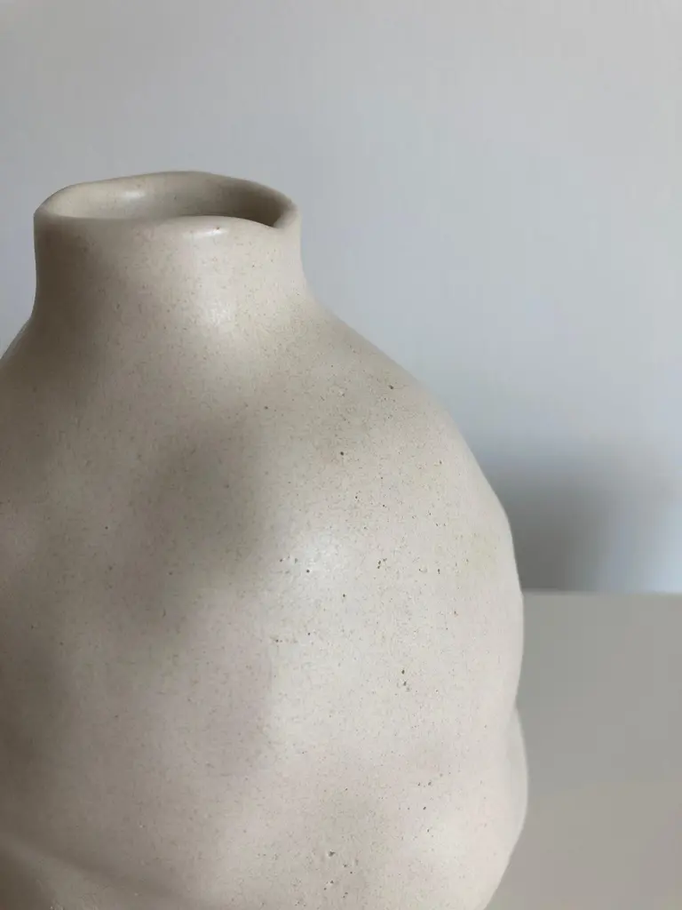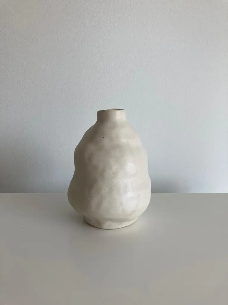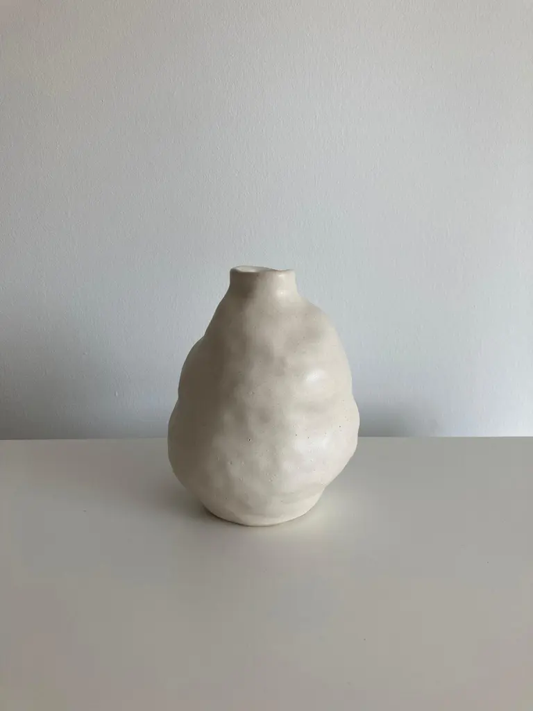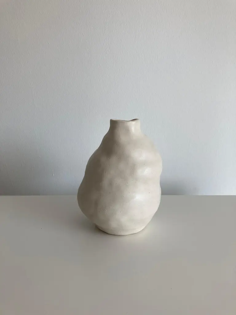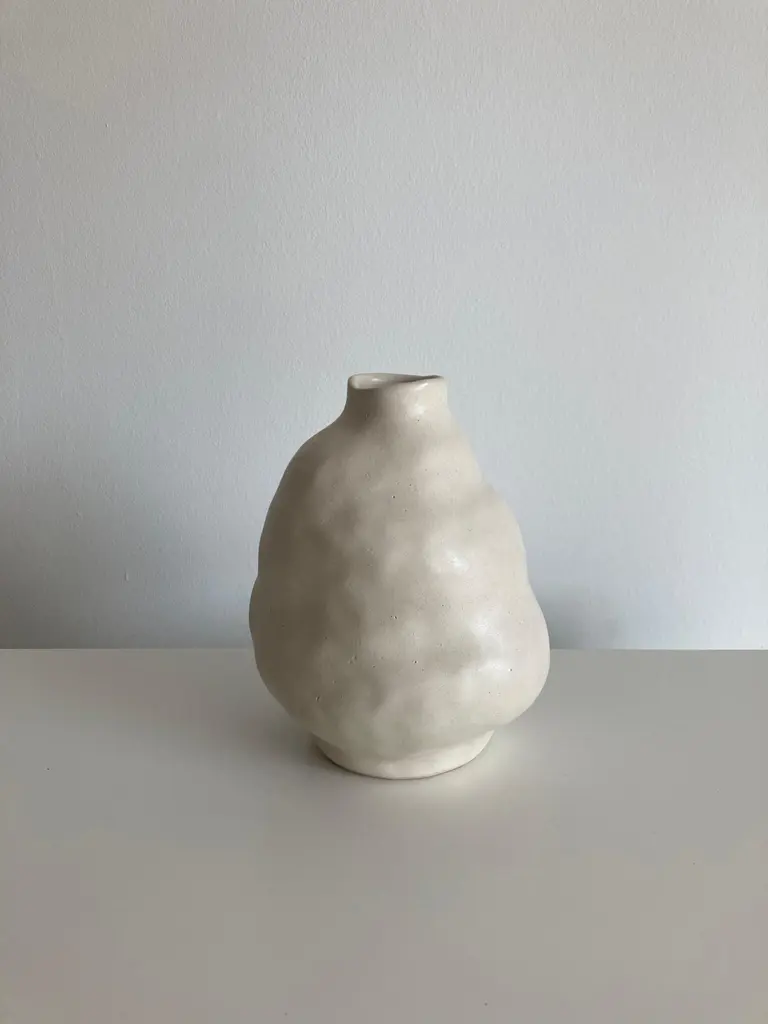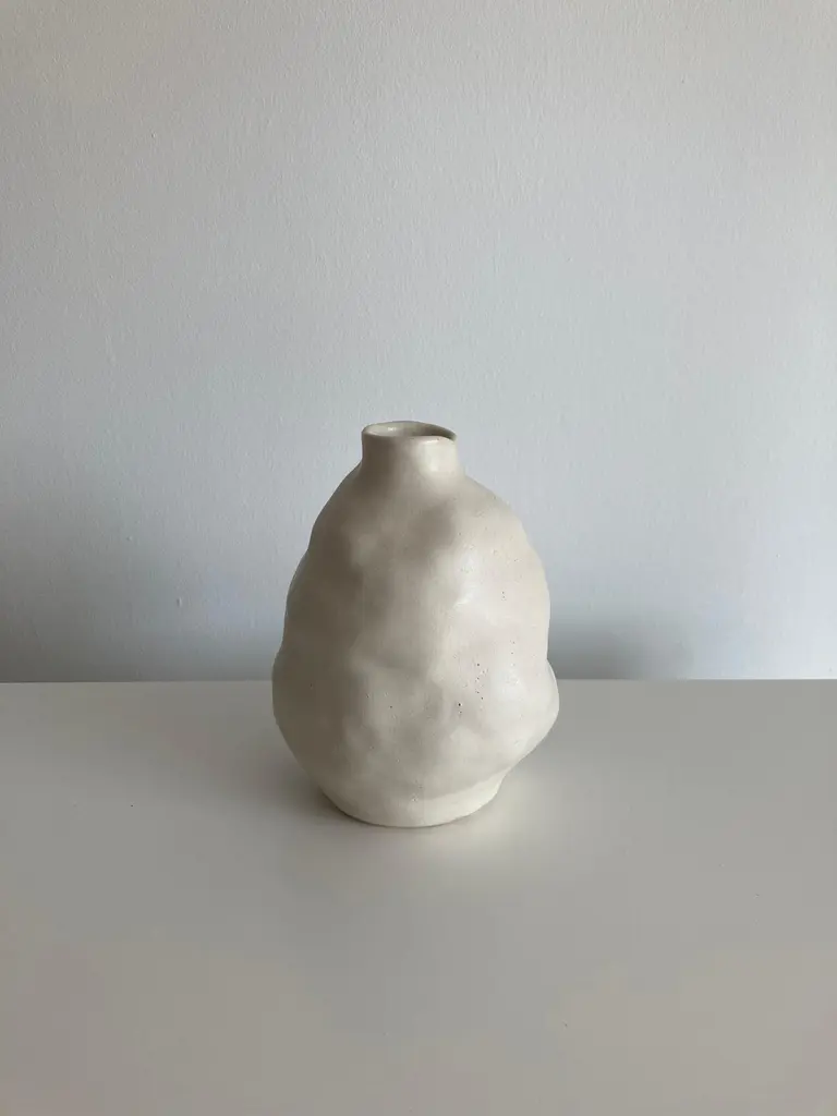 No.90 stoneware sculpture, Tonfisk by Ciona Lee One of a KindDimensions: Ø 11 x H 15 cmMaterials: White stoneware, satin cream glazeVariations of size and colour availableTonfisk is the ceramic practice by Ciona Lee, a Korean-Italian artist and designer based in London. All of her work is hand built, a method that she loves for the freedom it gives to shape things liberally with her hands. Her process is rather intuitive and starts with a shape in her mind which can evolve organically during the making. This gives each piece its unique and imperfect character. She focuses on the creation of vases and sculptural pieces that are quirky and intentionally lumpy.