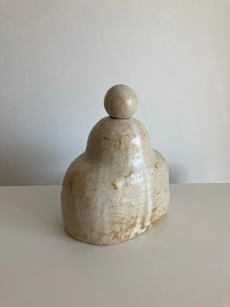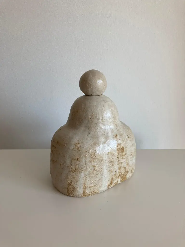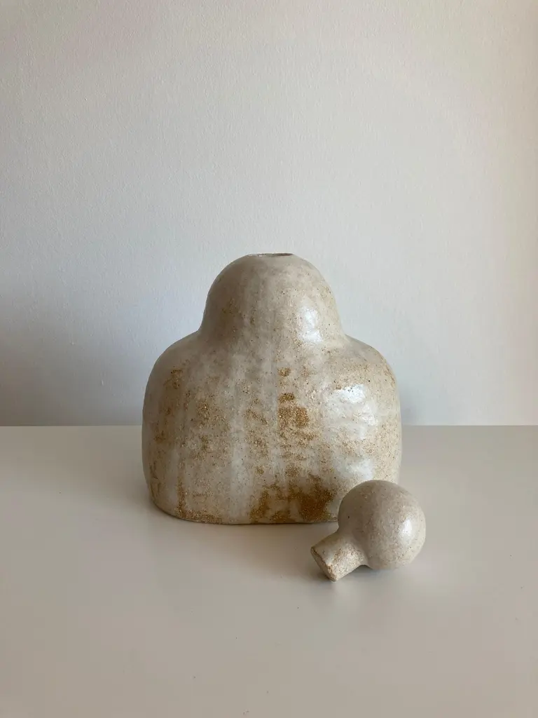 No.97 stoneware sculpture, Tonfisk by Ciona Lee One of a KindDimensions: W 18 x D 12 x H 15 cmMaterials: Grogged stoneware, satin cream glazeVariations of size and colour available,Tonfisk is the ceramic practice by Ciona Lee, a Korean-Italian artist and designer based in London. All of her work is hand built, a method that she loves for the freedom it gives to shape things liberally with her hands. Her process is rather intuitive and starts with a shape in her mind which can evolve organically during the making. This gives each piece its unique and imperfect character. She focuses on the creation of vases and sculptural pieces that are quirky and intentionally lumpy.