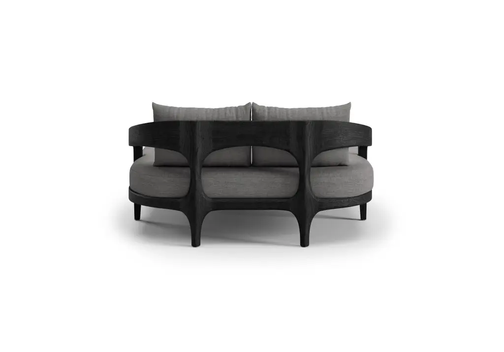 Noche Whale 2 Sofa by SNOCDimensions: W 148 x D 164 x H 66 cm.Materials: Teak Wood. The Whale-ash Collection features an elegant and robust design style inspired by the form of a whale skeleton. This unique collection is crafted by combining sustainable and natural materials with the exceptional quality of Teak wood. Strong and thick lines in the vertical plane enhance the design, while the structure in the horizontal plane captures attention. In addition to its skeletal framework, the Whale-ash Collection provides a comfortable experience with its broad seating details, offering users not only aesthetic appeal but also ergonomic comfort. Sunbrella fabric details in natural Teak and Black Teak color options, along with a table crafted from sand and epoxy materials, complement the SNOC Collections, including lounge sets, dining sets, and daybeds.SnocSince their foundation in 2004, SNOC’s history has been interwoven with that of international design. Each chapter written with care, each product reflecting its passion. The company understands that a real story exists behind each object and behind that story, a real person desiring something more. Their ever-developing methodology focuses on defining the core of a brand and utilizing those characteristics to help nurture its soul, aiding in forging real connections. This approach , results in their unique “work in progress” style: original, versatile solutions that in their signature blend of sound, vision and design best-suit every environment and situation, arousing a range of emotions on a daily basis as well as standing the test of time.Driven by functional research, an inclusive project and product culture, and deep care for the environment, we exist as the timeless yet present essence of outdoor furniture design elevating private and public space a like with thoughtfully presented, endlessly adaptive creations.