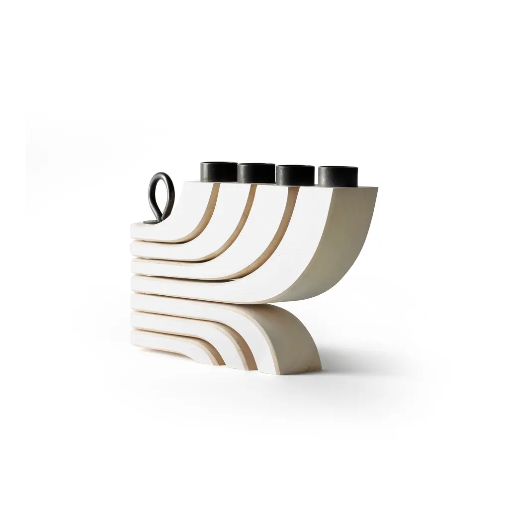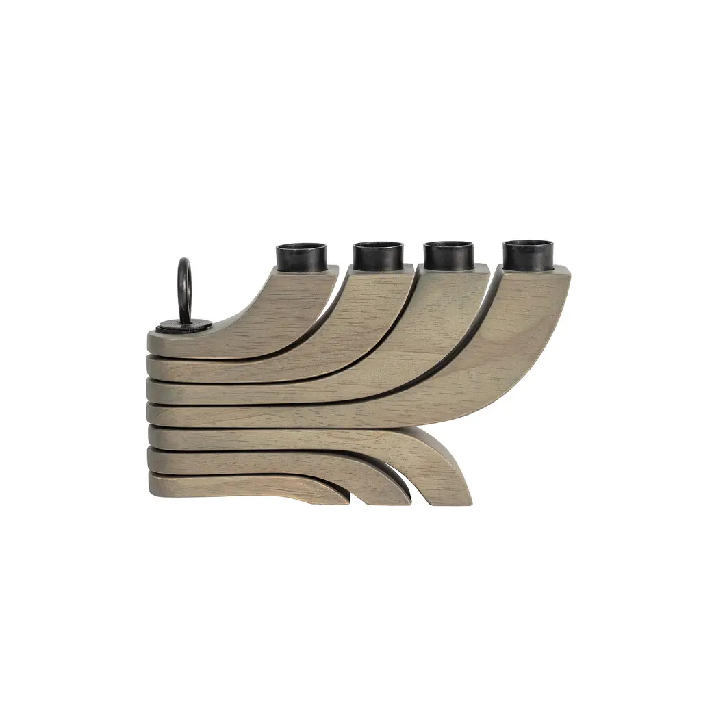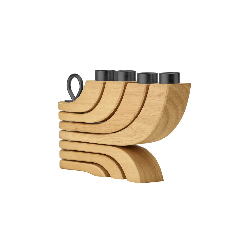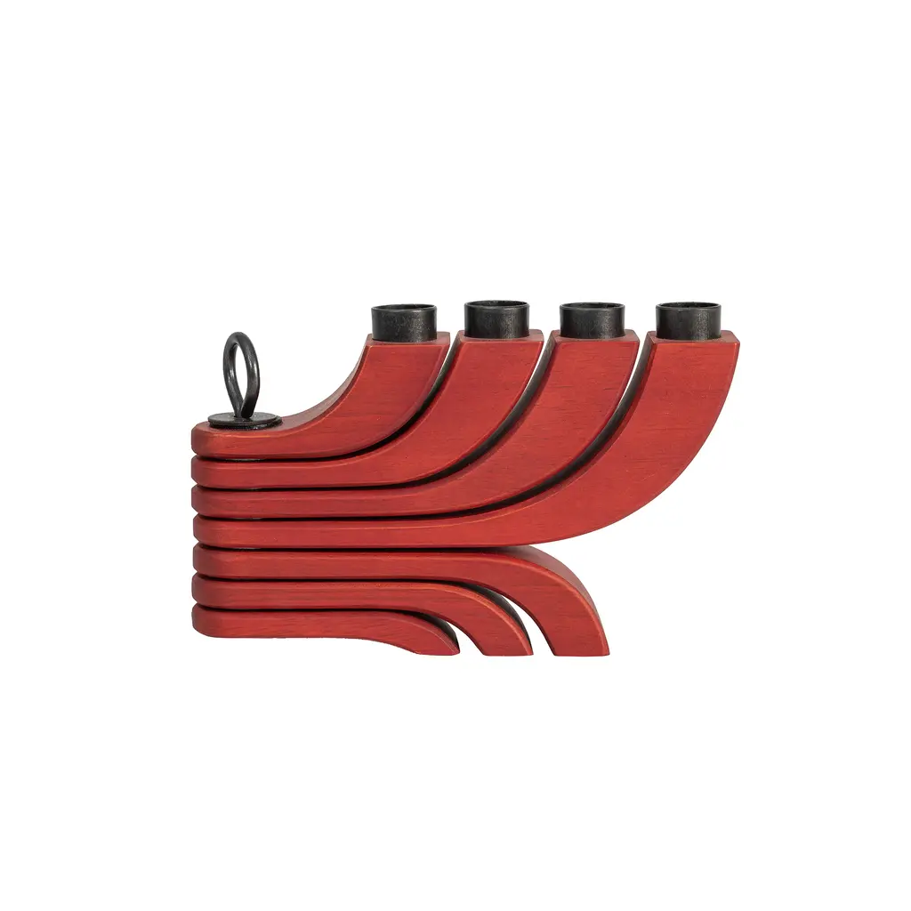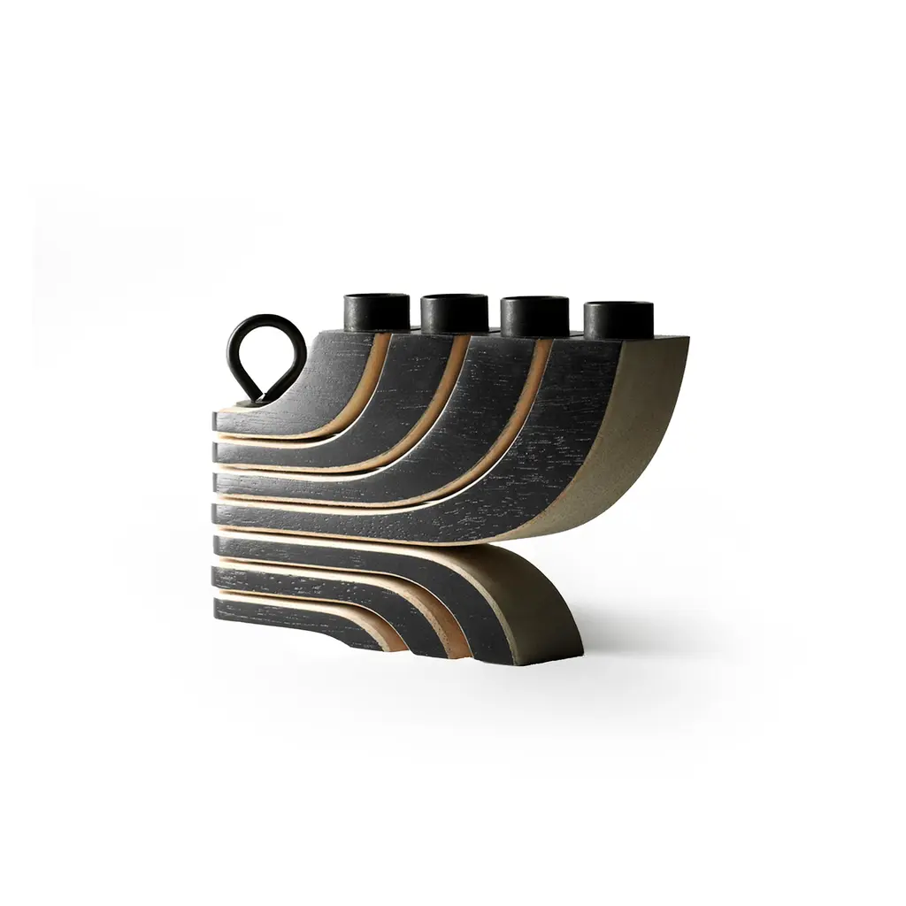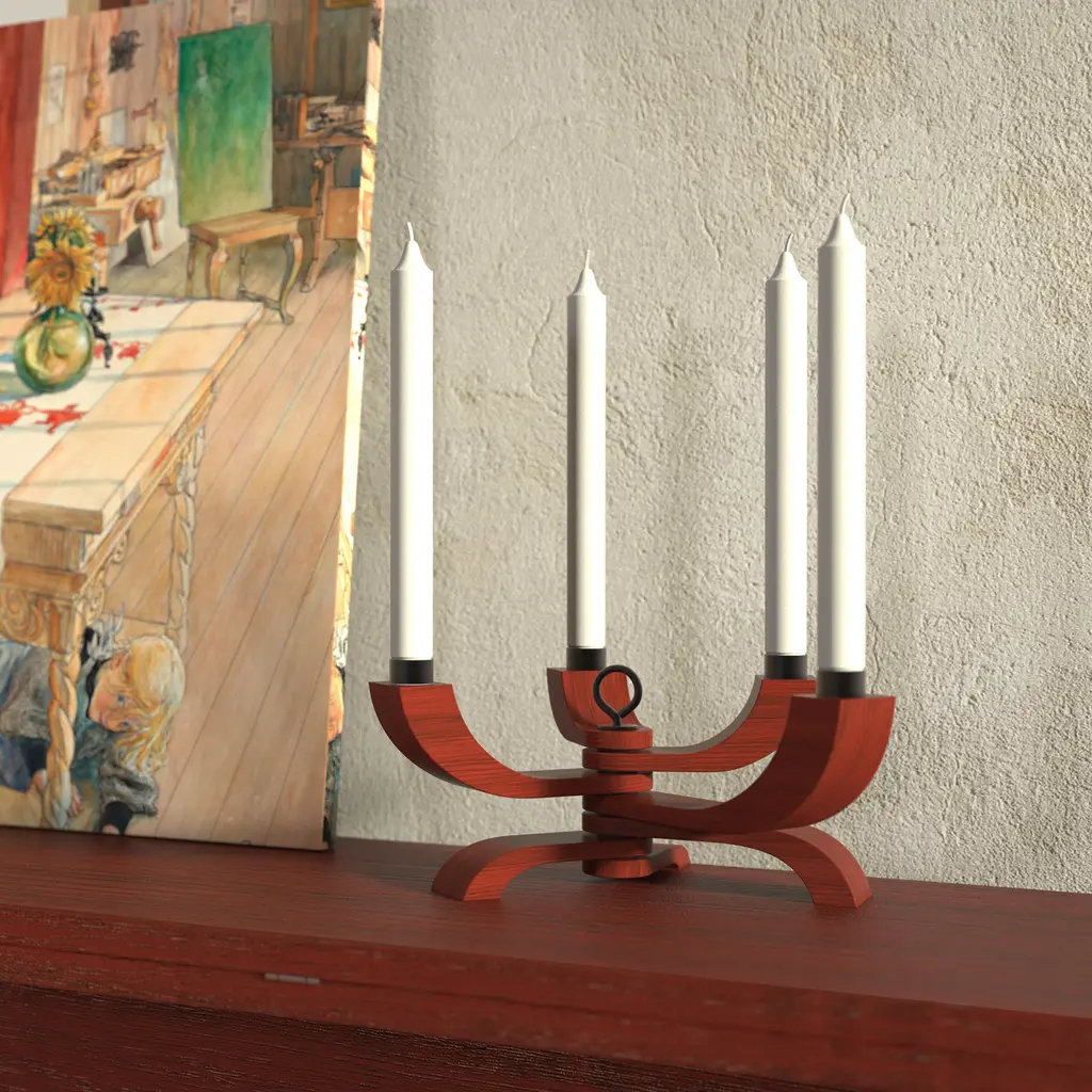 A dynamic sculpture that will never go unnoticed, the Nordic Light Foldable Candelabra features moving arms that you can arrange and fold to your heart’s desire. With this ingenious design, Jonas Grundell has transformed the traditional candle holder into an interactive object that can change its appearance in seconds. The curved arms move on the central axis, with a handy loop providing an easy way to separate or connect the different parts. Whether spread out, with the four candles oriented in four directions, or placed in a spiraling arrangement, Nordic Light will steal the show in any décor. The choice of materials enhances the design further. Crafted from lacquered or stained rubber wood, the arms boast a matte surface. The steel candle rings and the hinge feature a contrasting black finish that makes them resemble cast iron. When not in use, this flexible candle holder folds neatly to occupy a minimum of storage space, but you’ll probably want to leave it out on display, anyway.
