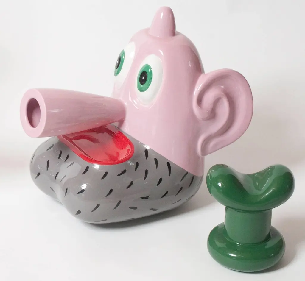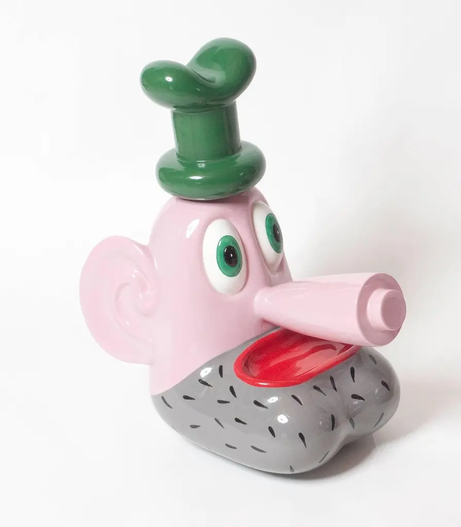 Two ceramic sculptures part of the 'Pop Will Eat Himself' designed by Massimo Giacon and produced by Superego editions. Limited edition of 50 copies. Signed and numbered.Biography Massimo Giacon was born in Padova in 1961. Since 1980 he has been working in Milan, as a comic strip writer, illustrator, designer, artist and musician. Since the early 80’he has contributed in the renovation of the Italian comic strip arisen from such magazines as Frigidaire, Alter, Dolce VITA, Cyborg, Nova Express, then in 1985 he started cooperating with the architecture study Sottsass Associati, carrying on his activity in design with Matteo Thun, Studio Mendini, Sieger Design and working with Olivetti, Memphis, Artemide, Alessi, Swatch, Philips, Ritzenhoff, Telecom. In 1990 he started an artistic activity which brought him to several both one-man and collective shows in Italy, Switzerland, America, Greece and Portugal. In 1994 he started being involved in graphic arts for web sites and CD-roms. After a decade of musical activity with different groups, in 1996 his first soloist collection “Horror Vacui” was issued, followed by another one in 2003, “Nella città Ideale” (In the Ideal City). Furthermore, he has created tapestry, rugs, pottery, kitchen tools, he has drawn advertising illustrations, he has cooperated with fashion designers and magazines (Romeo Gigli, Elle, Glamour), he has planned installations for international exhibitions and created animations for television. While teaching at the European Institute of Design in Milan, he is currently developing the production of several objects for Alessi, planning videogames, drawing comic stripsfor “Blue”and Coconino Press and continuing his artistic and performing activity.