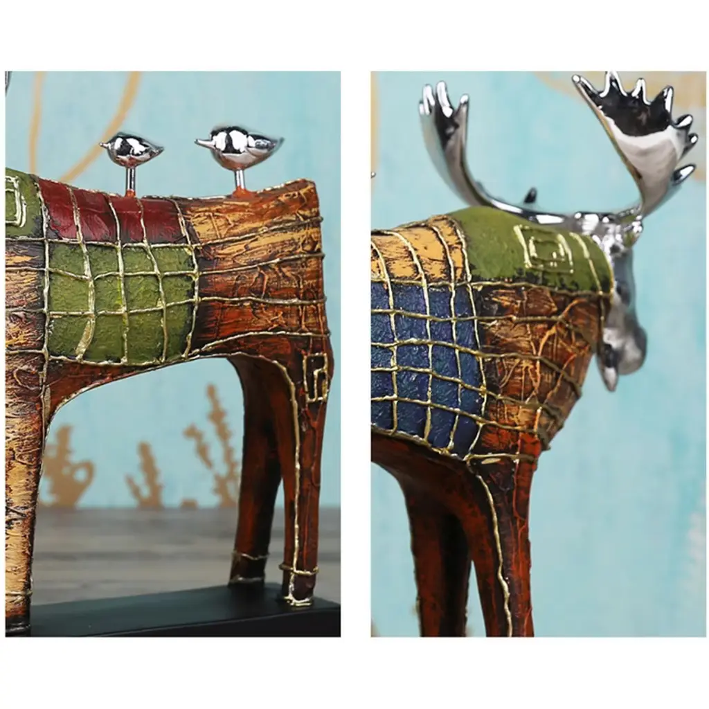 Notart Nature-inspired Resin Sculpture: Elk With Two Birds, Retro European Style Home Decor & 9.84*4.33*9.64in