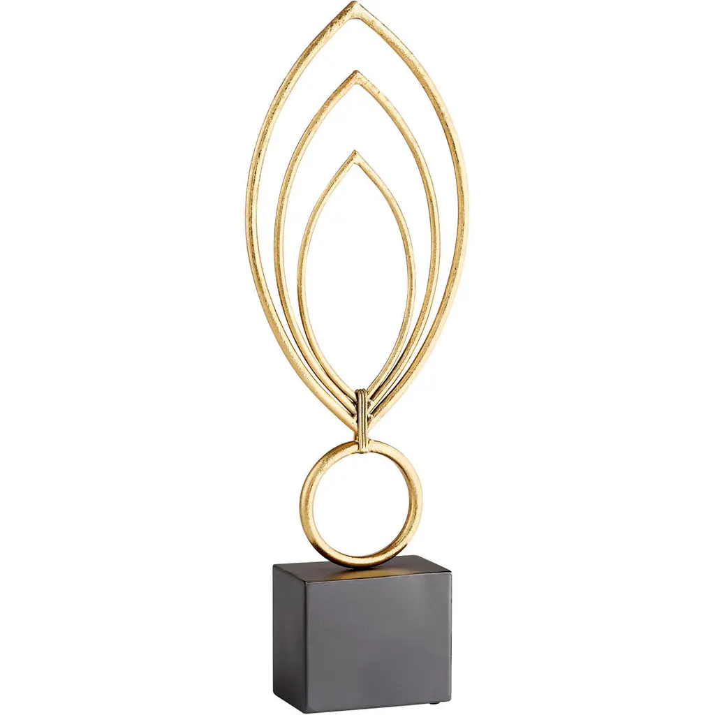 The Nova sculpture offers a minimalist style with geometric influence. This tabletop sculpture boasts three tiers of overlapping teardrop-shaped iron motifs, mounted on a solid black base, embodying perfect symmetry. Add a bit of industrial styling to your loft living space, incorporate into modern leaning office desk styling, or even add into your commercial design plans for an added touch of contemporary beauty.