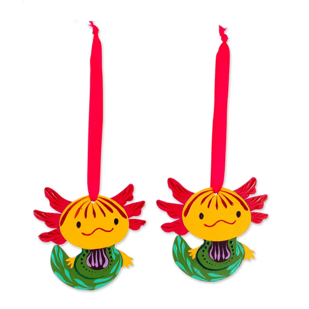 Novica Handmade Aquatic Cuteness Wood Ornaments (Pair) - Multi