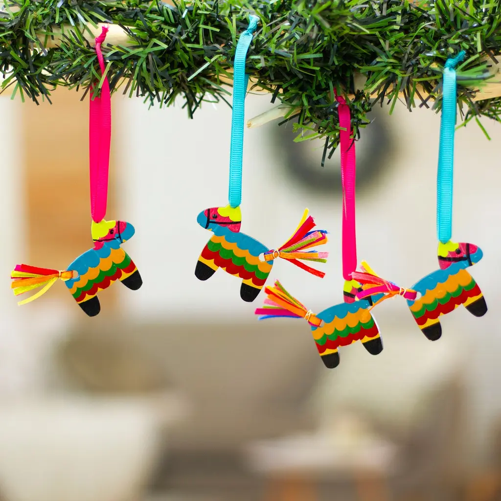 Novica Handmade Vivacious Donkey Wood Ornaments (Set Of 4) - Multi