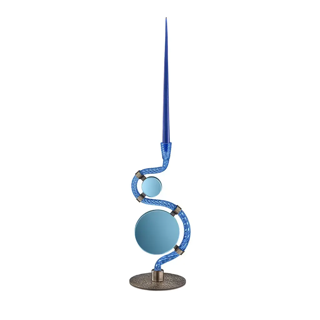 Ocean swirls by Art flower maker.Unique piece.Dimensions: Ø 44 x H 24 cm.Materials: powder coated deep blue matte / shiny auminum.The artistic eye of The Art Flower Maker combined with Italian artisanal metalwork has brought to life these unique pieces which can serve as a focal point in a private domestic space as well as have tremendous visual impact in a grander setting.Every sculpture is intentionally created to be a unique piece, each with its own distinctive details. The materials from which these pieces are built by their nature have slight natural variances in tone and finish giving each sculpture special and remarkable properties. The photo depicts the correct proportion and finishing possibilities that can also be personalized upon request.Born in Sicily, Marcella Trimarchi moves to Milano in 1985 to pursue a degree in Fashion. In 1989 she is hired by Gianni Versace as a designer, working closely with Gianni until 1997. Tom Ford then brings her into his Team in 1998, prior to honing her skills further for Valentino & Moncler Gamme Rouge working with Alessandra Facchinetti who she meets at Gucci. In 2012 she moves to New York City and works for Calvin Klein Collection as VP Creative Product Development. She decides in 2018 to reconnect with her creative side. She was drawn to the bold arrangement of flowers combining her remarkable eye for beauty and her uncanny attention to details now highly refined from her work for Couture collections. Marcella is inspired to explore more enduring ways embody and embolden fresh arrangements, and reinvents herself as The Art Flower Maker, where her ephemeral creations are permanently captured through both photography and sculpture. During her daily walks in the New York City’s flower district, Marcella discovers the decorative Lilygrass leaves that soon become the center piece of her new design work. The winsome flexibility of the leaves allow her hands to gently bend and twist them in ways reminiscent of silk ribbons or endless curves drawn with an imaginary pencils that frame the flowers in uniquely interesting ways. Her designs are sparse yet elegant, filling spaces around the flower and the thin leaves with grace and lightness. She plays with reflections and shadows, creating an illusion of infinite swirls. Each and every flower and leaf Marcella designs is painstakingly crafted by hand, capturing the beauty and diversity of the natural world. Each of Marcella’s flower and leaf sculptures are indeed a unique work of art, with exquisitely diverse perspectives from every angle, that capture the attention and enchant the viewer’s eye.