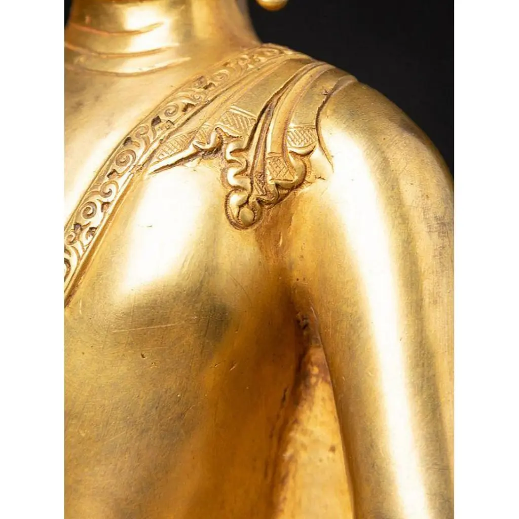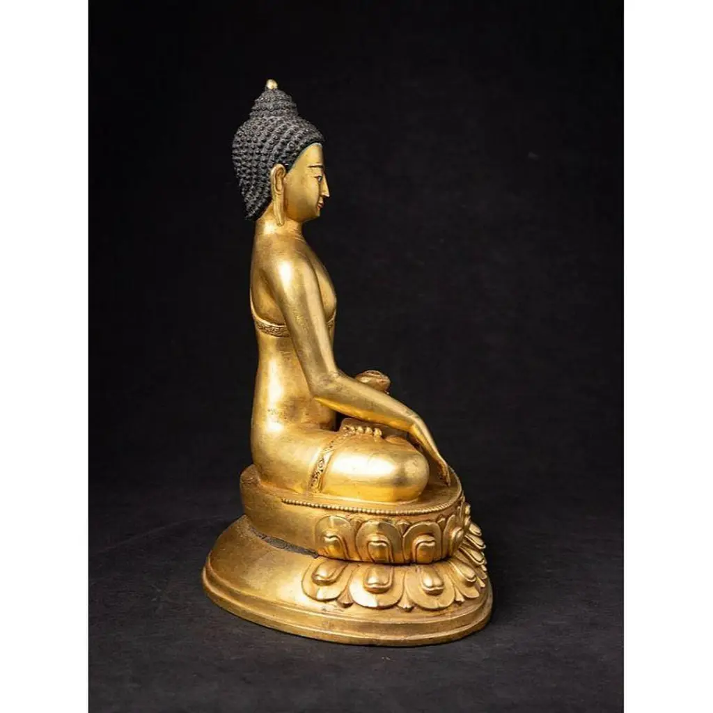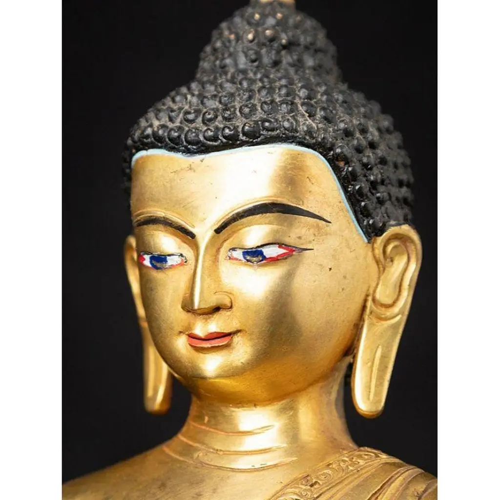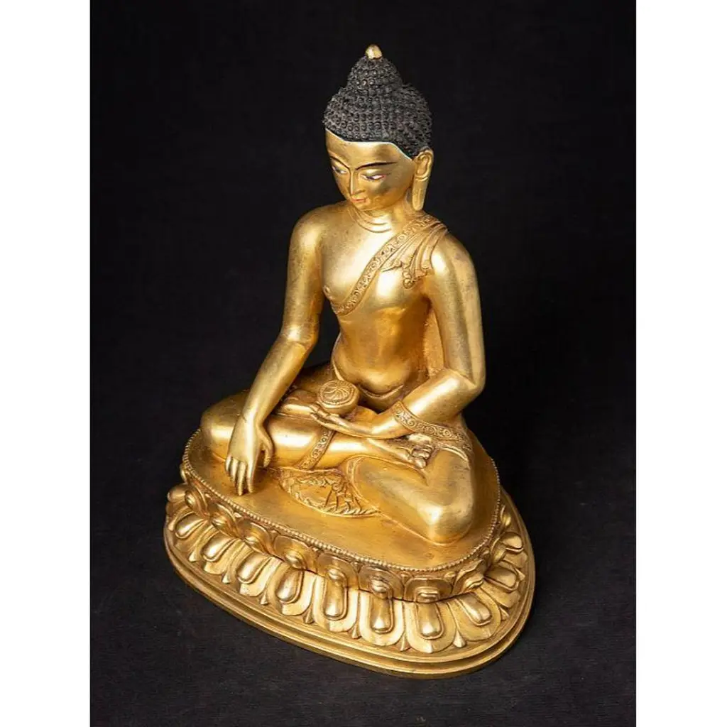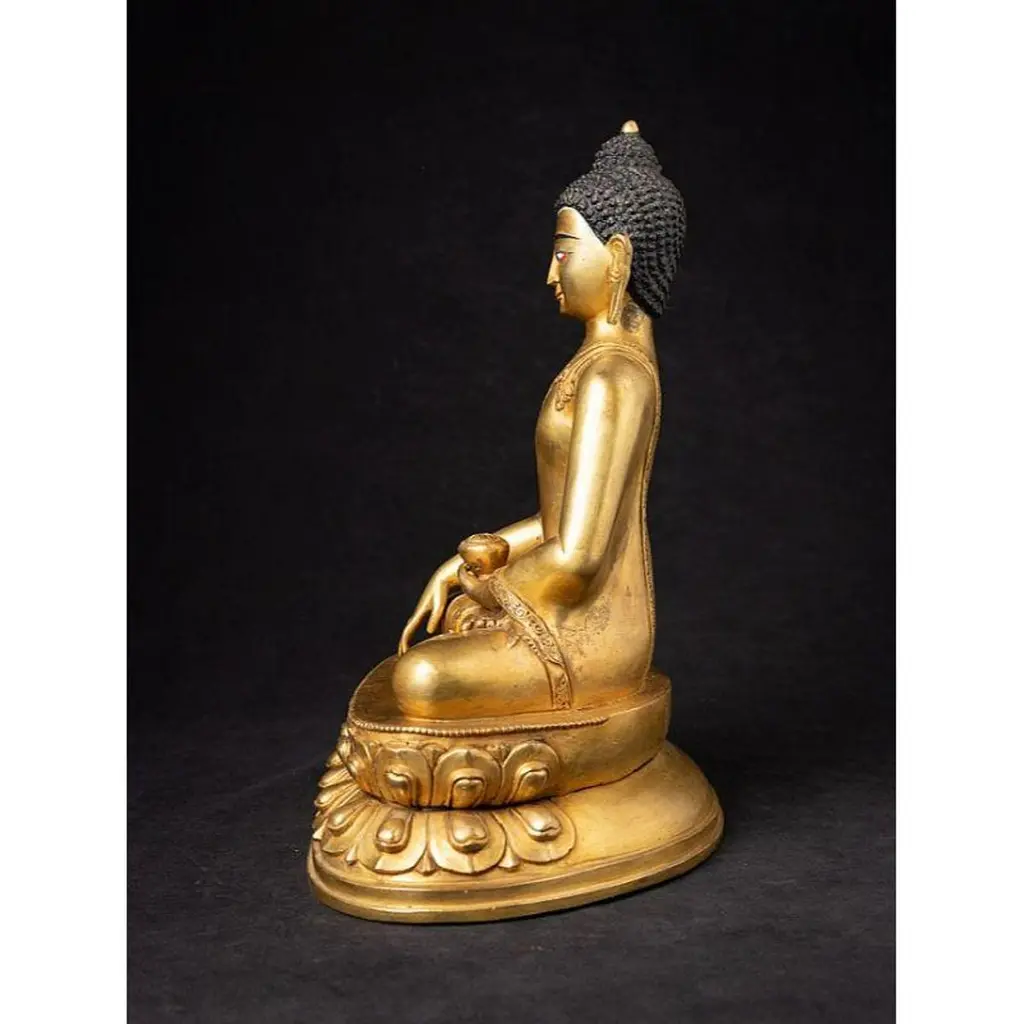 Material: bronze29,3 cm high 22,4 cm wide and 17 cm deepWeight: 3.514 kgsFire gilded with 24 krt. goldBhumisparsha mudraOriginating from NepalMiddle / late 20th centuryThe bottom plate is replaced, see the picturesVery high quality !