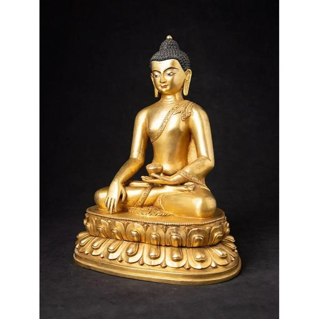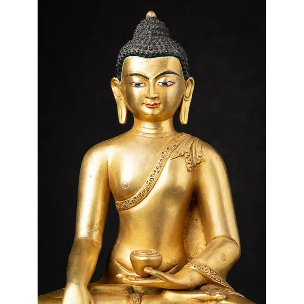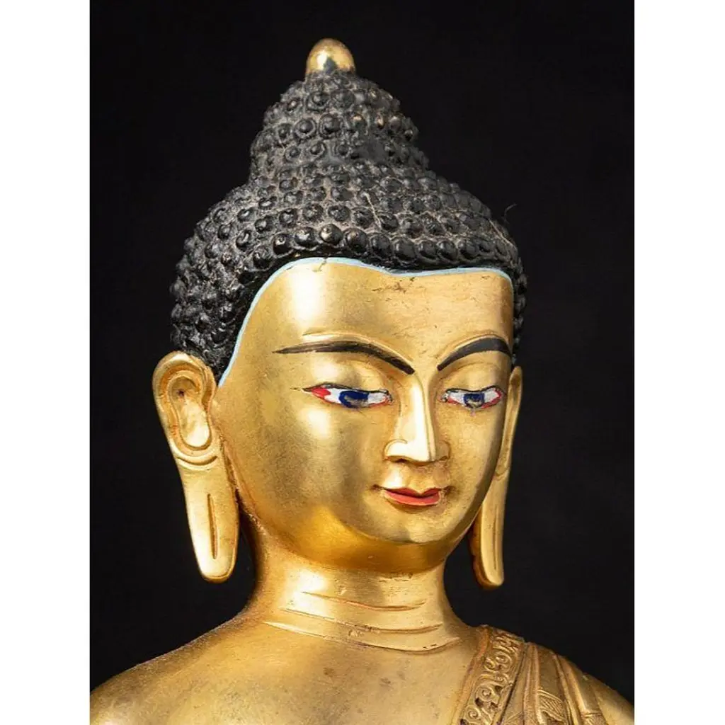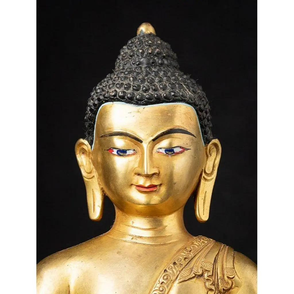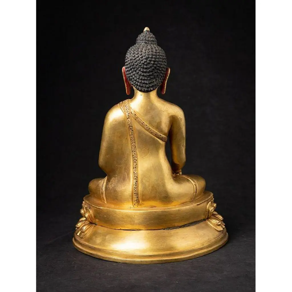 Material: bronze29,3 cm high 22,4 cm wide and 17 cm deepWeight: 3.514 kgsFire gilded with 24 krt. goldBhumisparsha mudraOriginating from NepalMiddle / late 20th centuryThe bottom plate is replaced, see the picturesVery high quality !