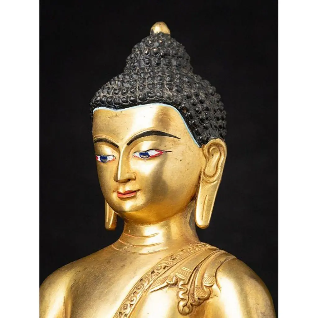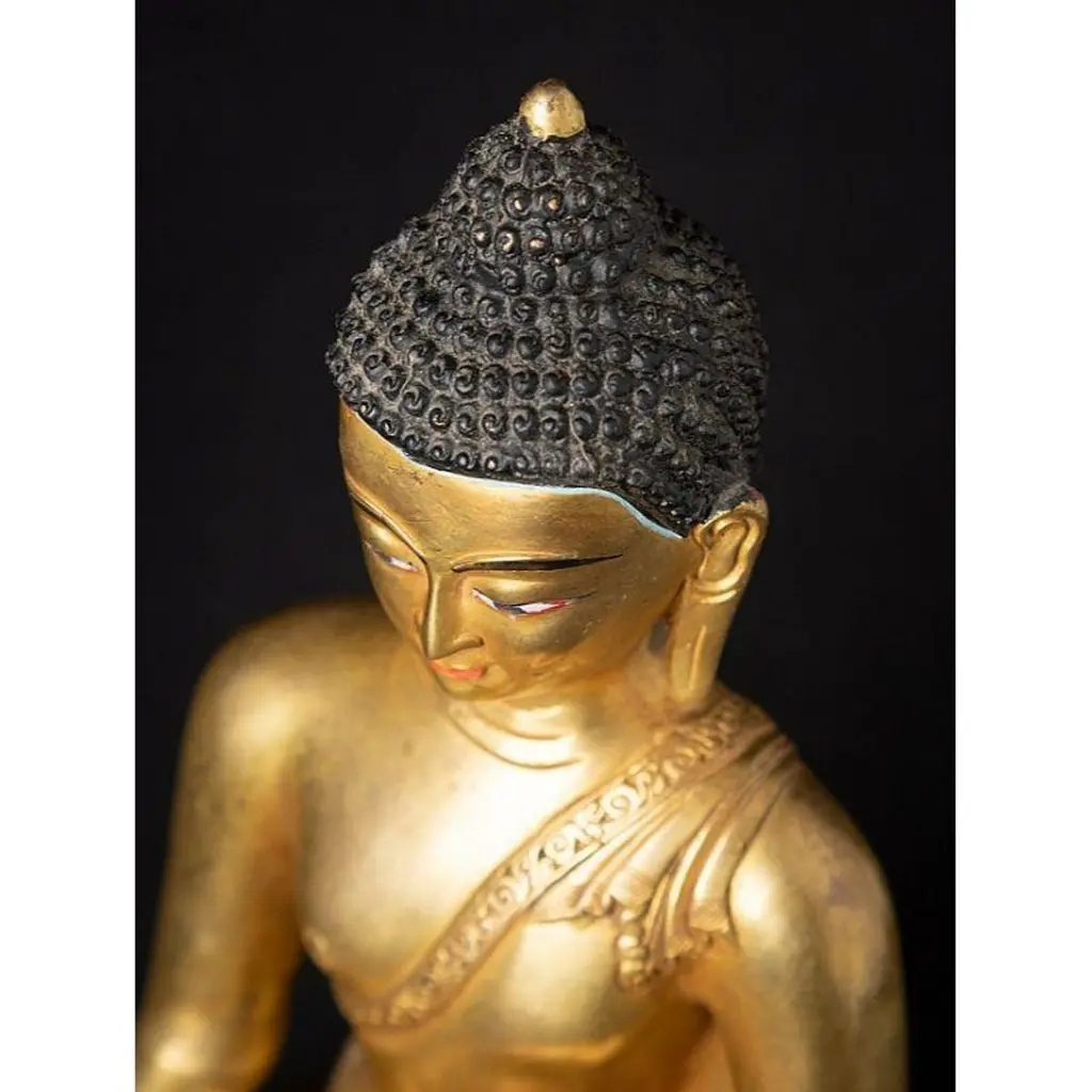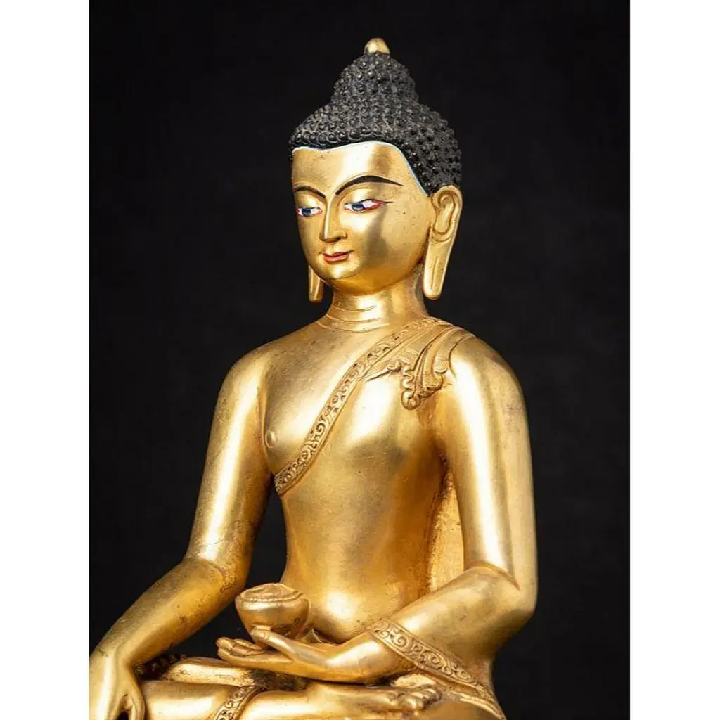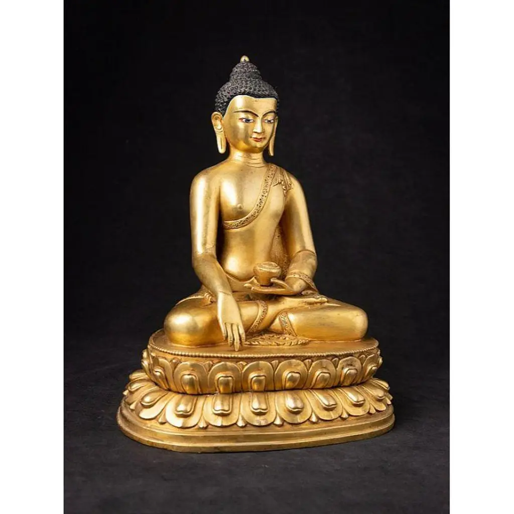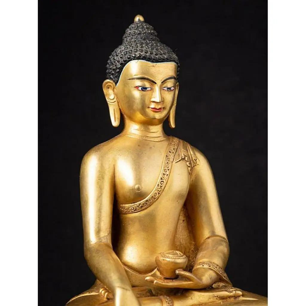 Material: bronze29,3 cm high 22,4 cm wide and 17 cm deepWeight: 3.514 kgsFire gilded with 24 krt. goldBhumisparsha mudraOriginating from NepalMiddle / late 20th centuryThe bottom plate is replaced, see the picturesVery high quality !