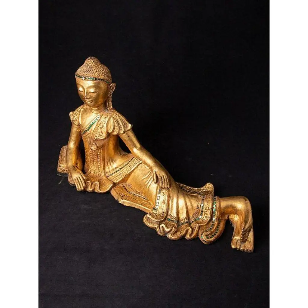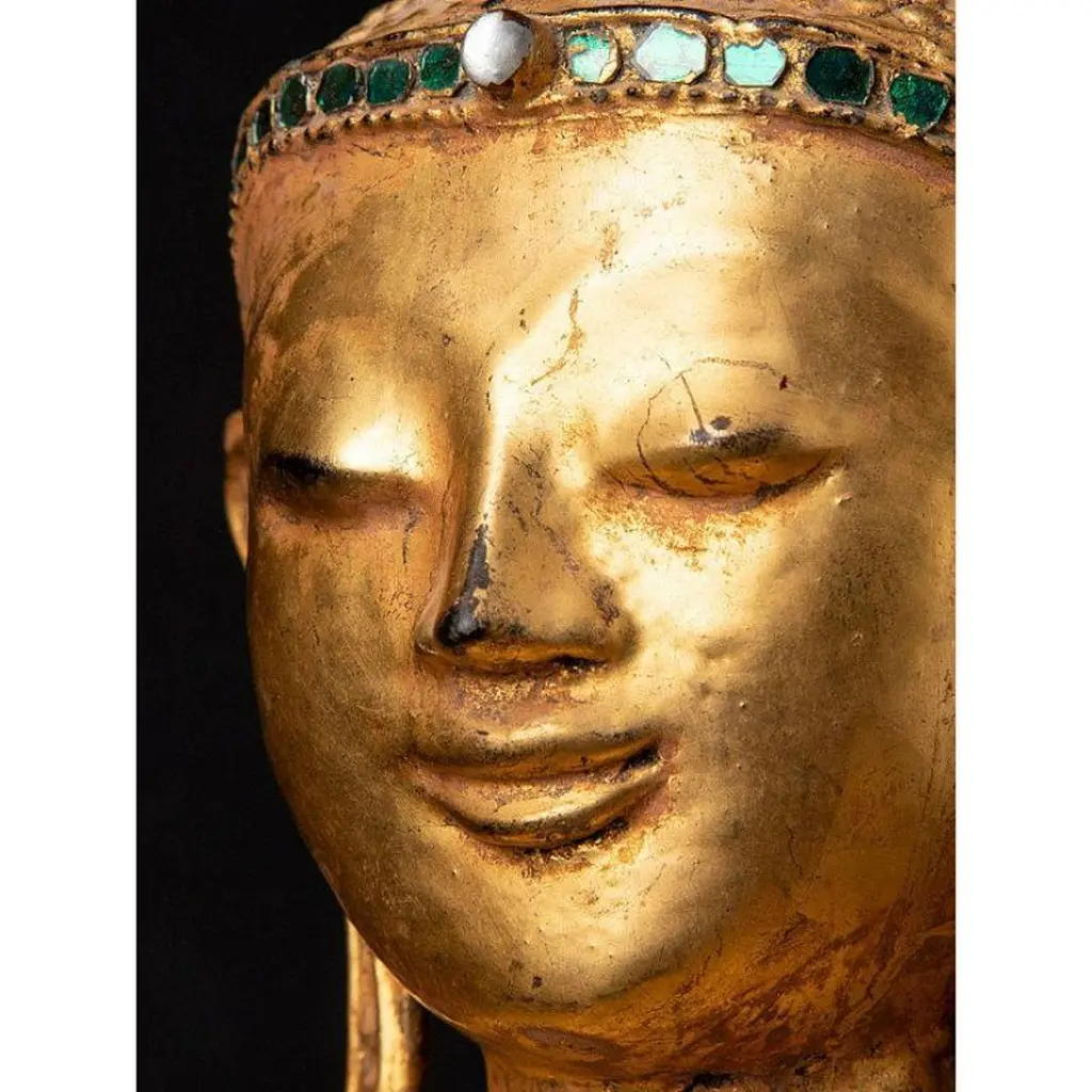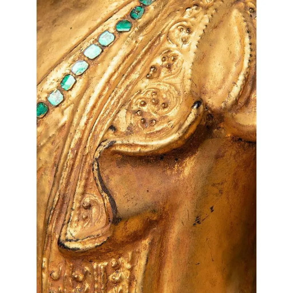 Material: lacquerware.Measures: 28, 5 cm high.50 cm wide and 17, 2 cm deep.Weight: 0.707 kgs.Thickly gilded with 24 krt. gold.Mandalay style.Originating from Burma.Middle-20th century.