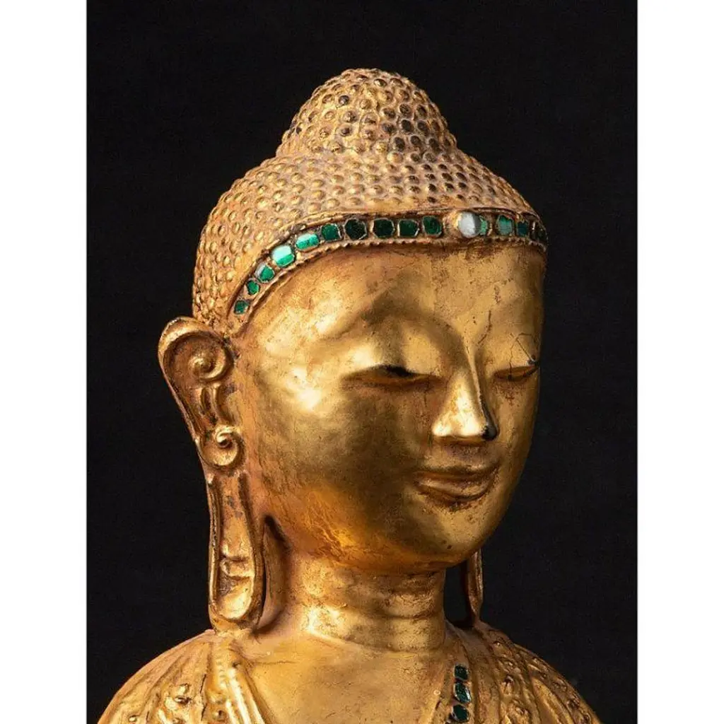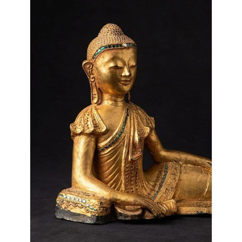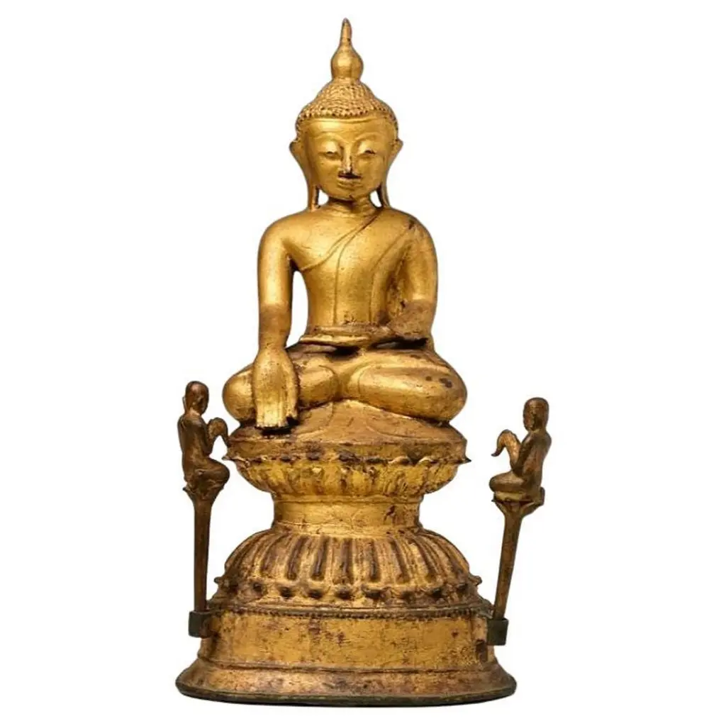 Material: lacquerware.Measures: 28, 5 cm high.50 cm wide and 17, 2 cm deep.Weight: 0.707 kgs.Thickly gilded with 24 krt. gold.Mandalay style.Originating from Burma.Middle-20th century.