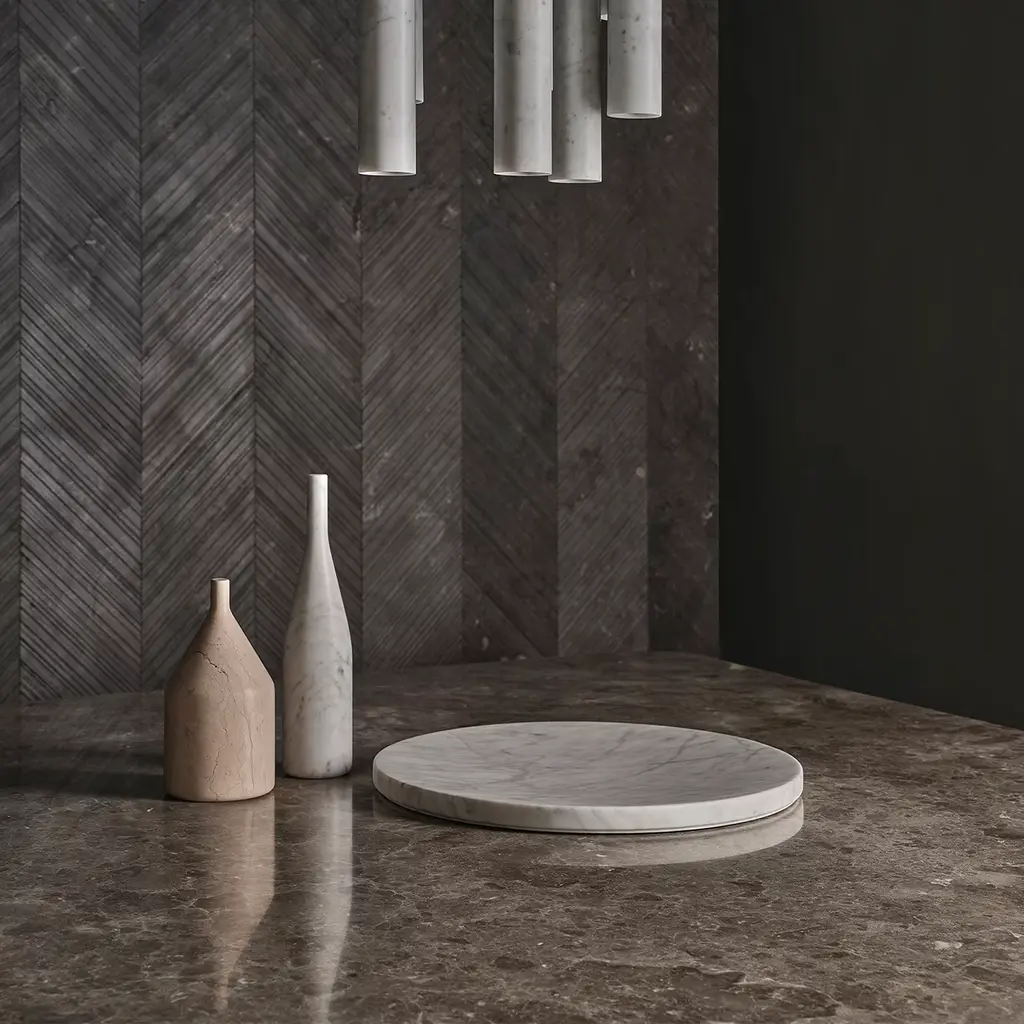 Entranced by the simple forms of Giorgio Morandi's still life paintings, designer Elisa Ossino's sculptural work brings to life two-dimensional elegance. A classically inspired bottle shape crafted out of white Carrara marble, the cylindrical base elegantly tapers into a fluted neck and mouth. Delicate gray veining and striations gracefully dance around the bottle's sinuous silhouette for a stunning visual effect. Featured alone or with other sculptures from the same collection, this work will transform any decor.